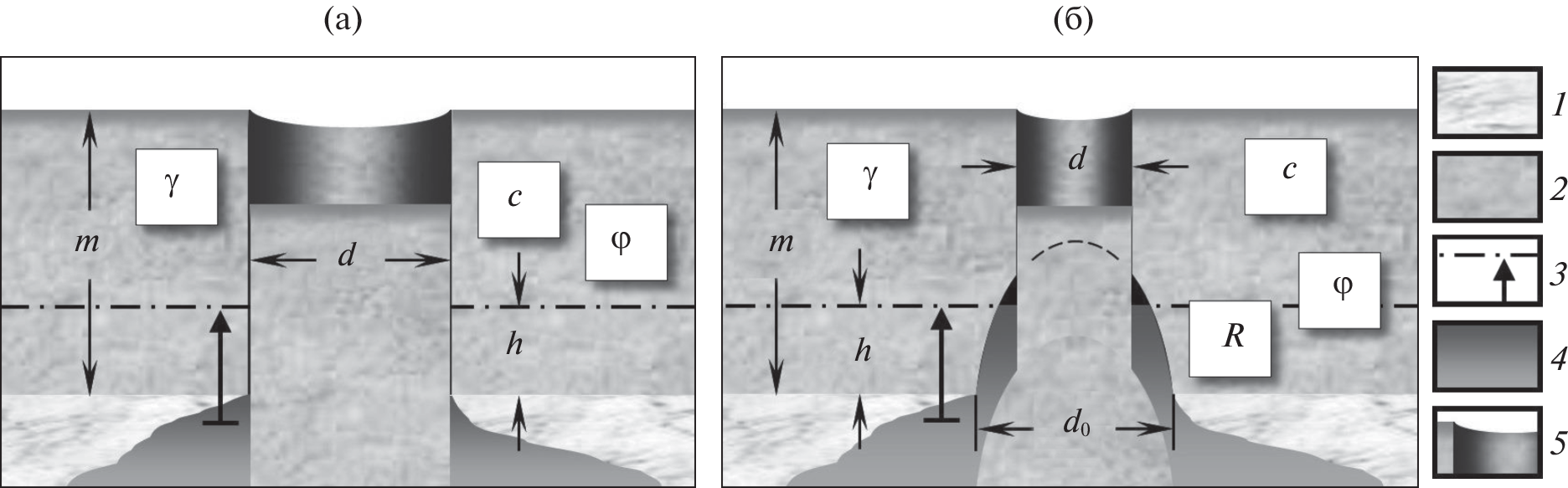 - Khomenko, V.P., Leonenko, M.V. The collapse of clays covering a karst cavity: in-situ investigation, conceptual model and prediction. Geotechnical Engineering for Infrastructure and Development. Proc. of the XVI ECSMGE, Edinburgh, UK, 13–17 September 2015, vol. 4. Slopes and Geohazards. ICE Publishing, 2015, pp. 2269–2274.