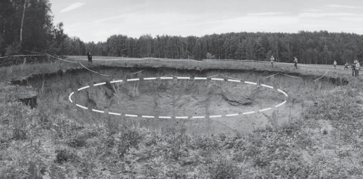 - Khomenko, V.P. Karstovo-obval’nye provaly “prostogo” tipa: polevye issledovaniya [Collapse sinkholes of “simple” type: in situ investigations]. Inzhenernaya geologiya, 2009, no. 4, pp. 40–48. (in Russian)