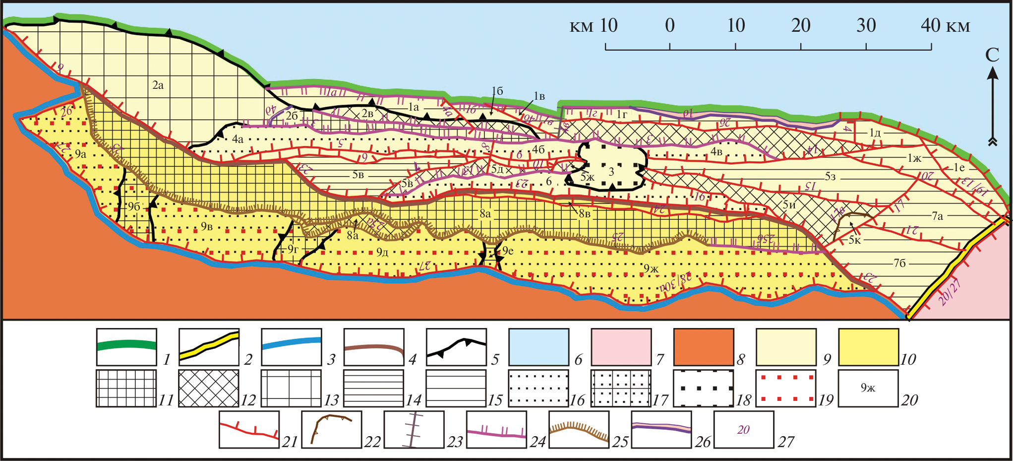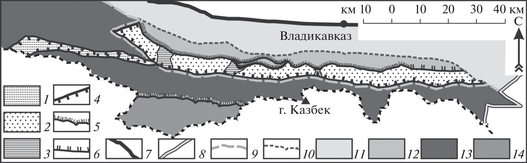 The Kazbek segment differs from the adjacent Central and Eastern segments of the Greater Caucasus megavault by the relative narrowing of the main zones and their latitudinal orientation. The main units of the segment comprise the zones of central elevations and northern and southern flanks. The application of orotectonic method allowed us to subdivide these zones into a number of regional and local late-stage structures separated by active faults. There are three suture zones. The pattern block structures are separated mainly by downthrows. The original data obtained, which are not presented in standard materials on geological survey, are useful for construction design and in solving geoecological tasks.