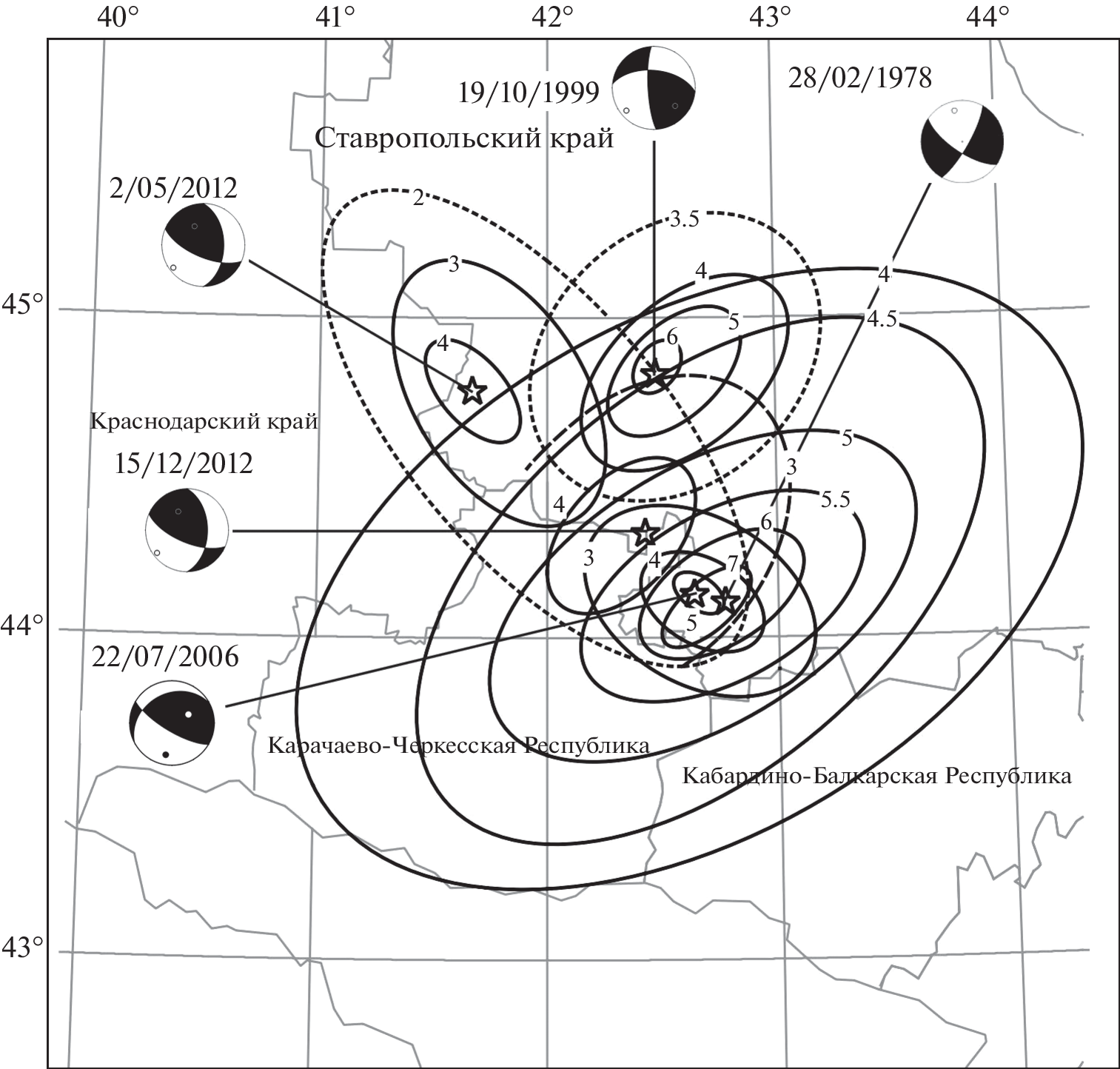 - Gabsatarova, I.P., Devyatkina, L.V., Ivanova, L.E. et al. Suvorovskoe earthquake on July 22, 2006 with КP = = 11.3, = 5–6 (Stavropol krai). In: Earthquakes in the Northern Eurasia, 2006. Obninsk, 2012, pp. 340–350. (in Russian)