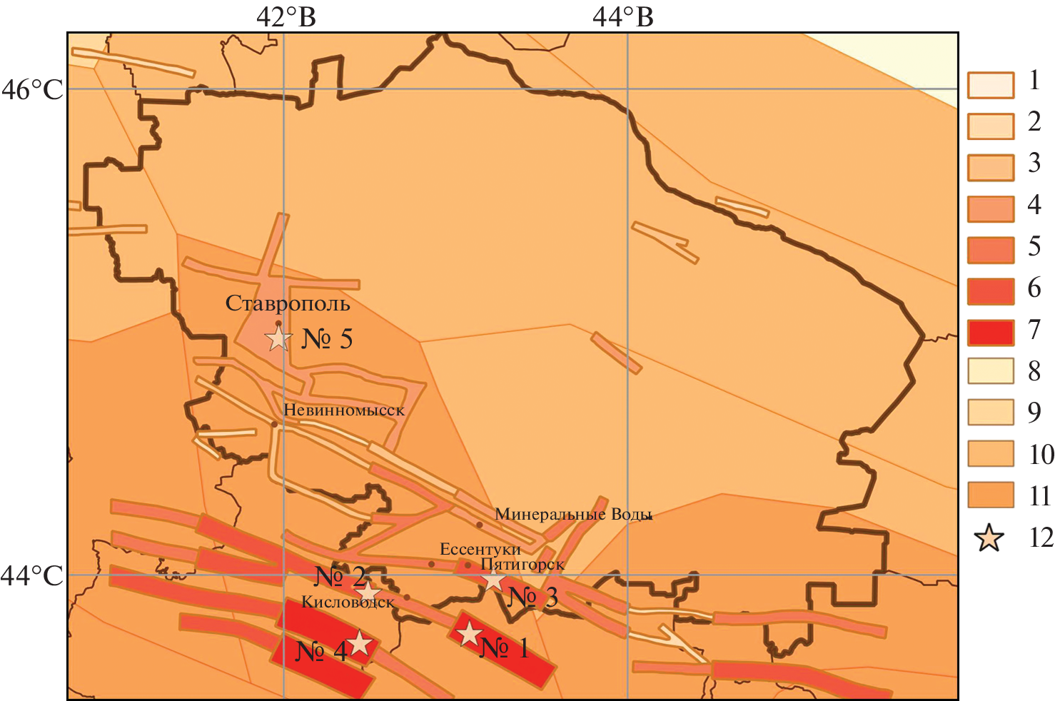 - Frolova, N.I., Gabsatarova, I.P., Lutikov, A.I., Sushchev, S.P., Malaeva, N.S. Seismic risk assessment in the Stavropol krai. Geofizicheskie protsessy i biosfera, 2022, vol. 21, no. 3, pp. 111–136. (in Russian)