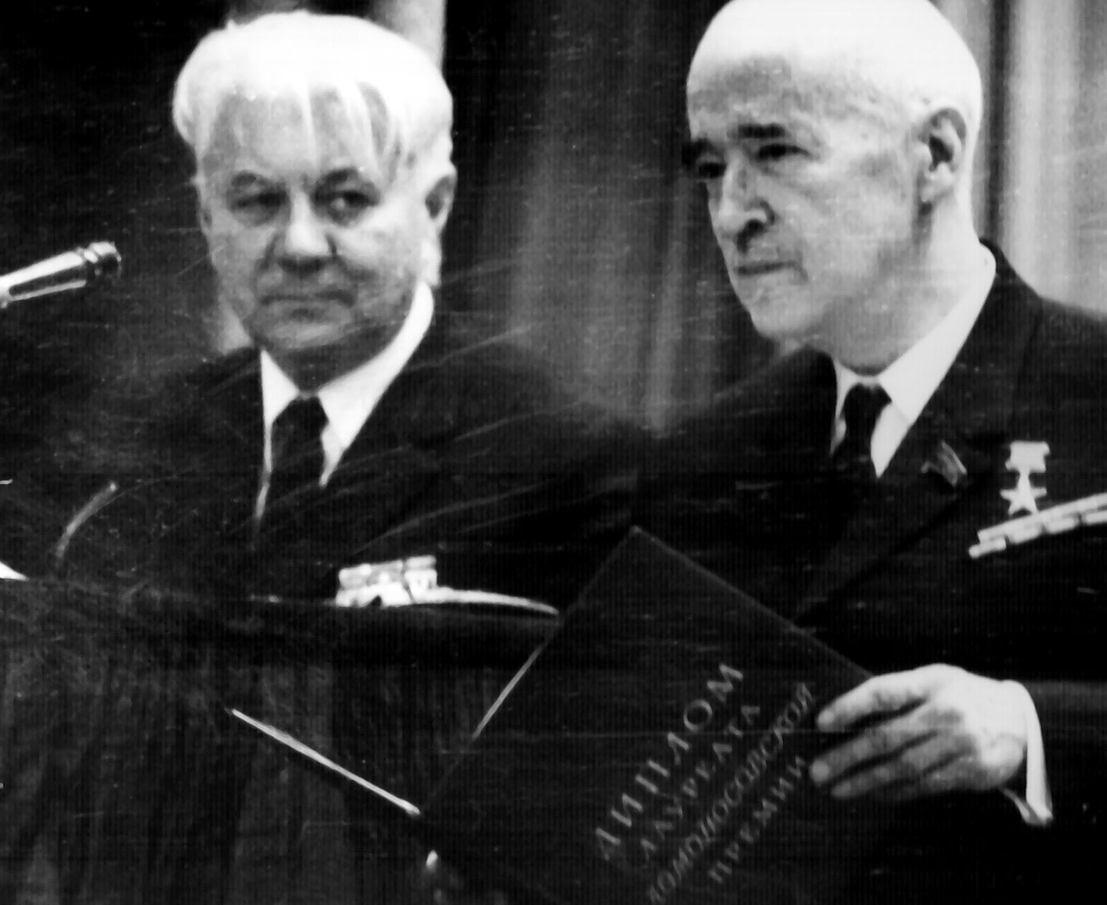 Рис. 4. Ректор МГУ им. М.В. Ломоносова И.Г. Петровский вручает Е.М. Сергееву диплом лауреата Ломоносовской премии (1976 г.).