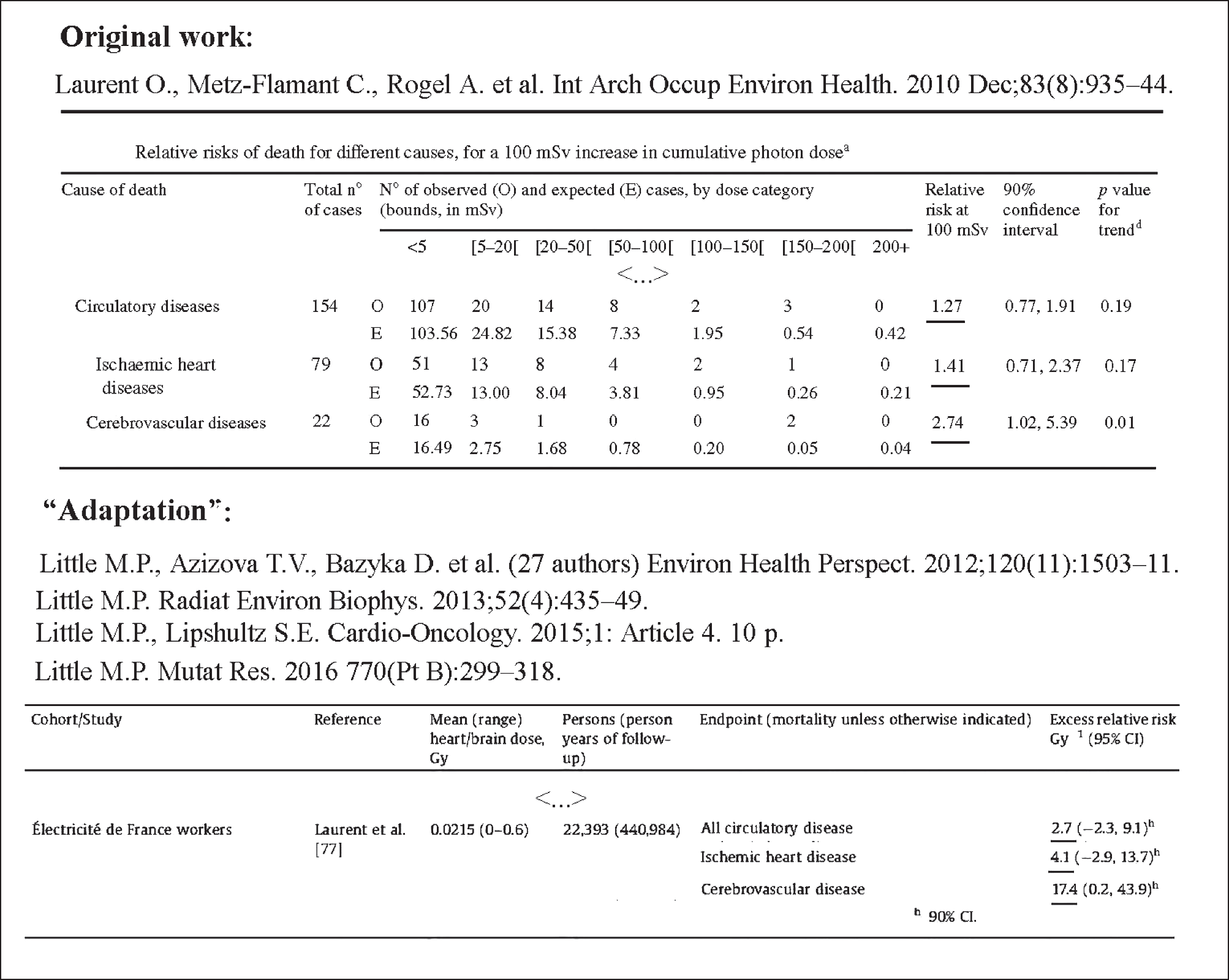 - Lagarde F., Cullings H.M., Shimizu Y., Cologne J.B. Tiny excess relative risks hard to pin down (rapid response to Cardis et al 2005) // Br. Med. J. 2005. V. 331. № 7508. P. 77–81. https://doi.org/10.1136/bmj.38499.599861.E0. https://www.bmj.com/content/331/7508/77/rapid-responses (address data 2022/01/29).