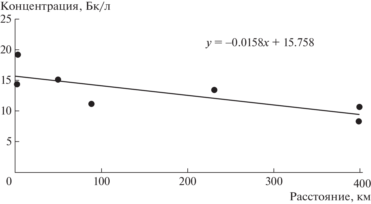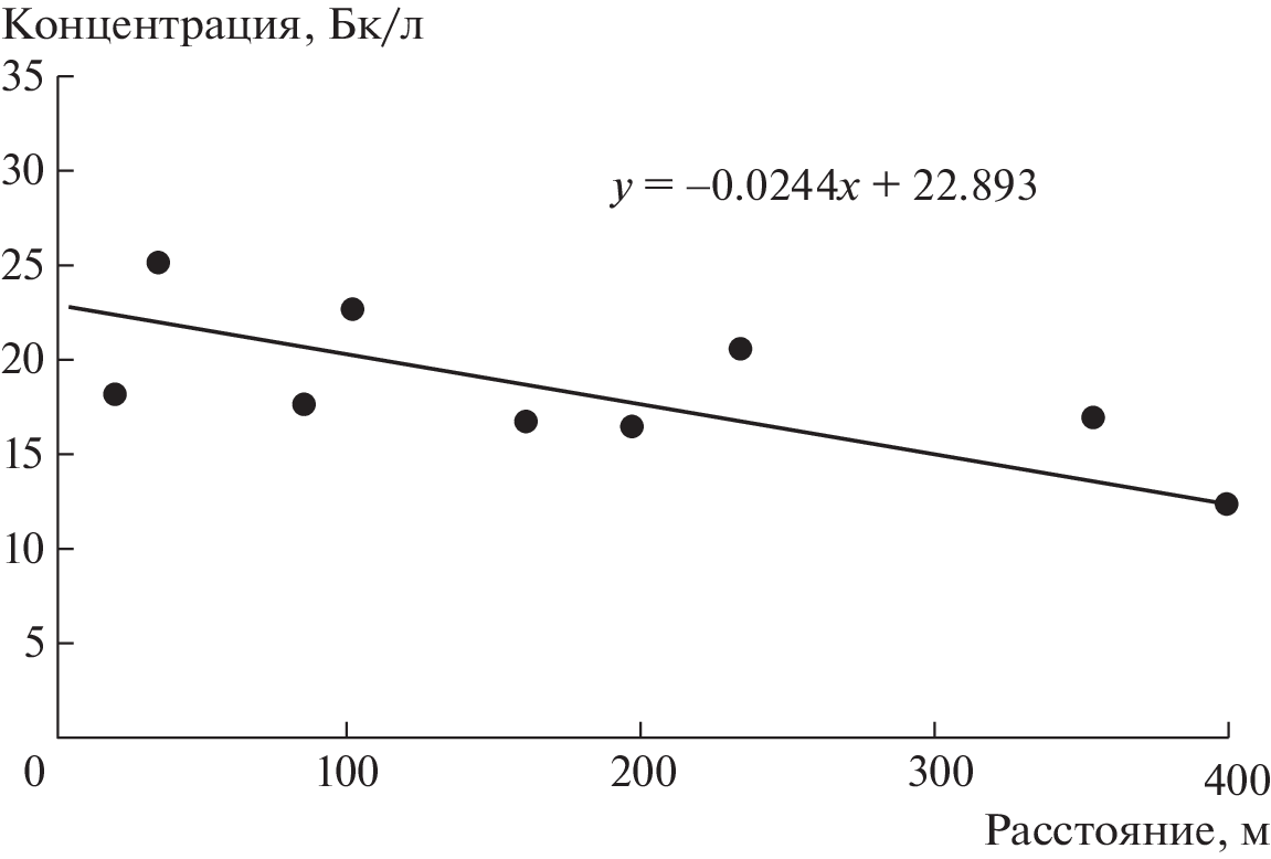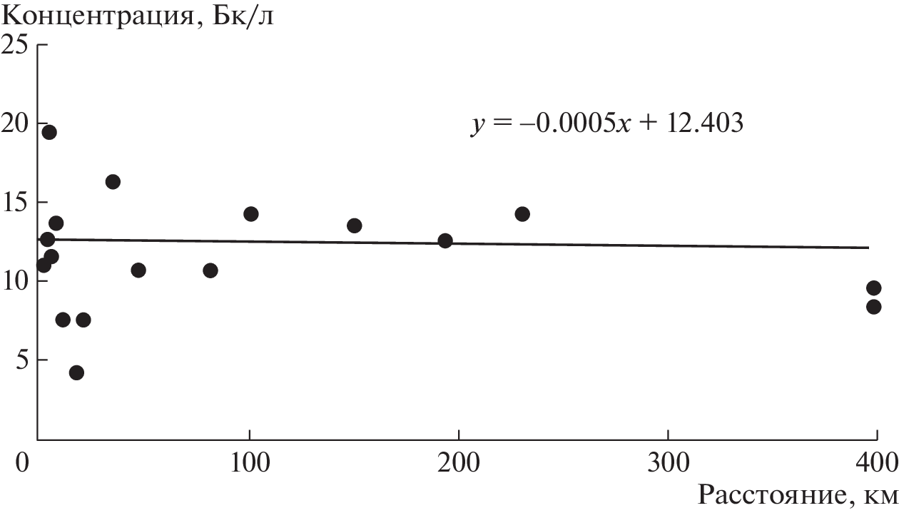 The paper presents data on the concentration of tritium in the water of the river Pyshma, which is under the influence of the Beloyarsk NPP named after Kurchatov, and drinking water of settlements located in the coastal zone of the river. It was found that the content of radionuclide in the water of the river at a distance of up to 400 km below the dam of the Beloyarsk reservoir varies within 13–26 Bq/l and significantly decreases along the course of the river. In the coastal part of the river, above-background tritium pollution enters the drinking water of wells and chinks. It is shown that in water samples from wells, the tritium concentration significantly decreases with increasing depth and distance from the dam of the Beloyarsk reservoir; in the water of private wells, such a relationship was not reliably recorded. The concentration levels of tritium in the spring water of 7 settlements located along the Pyshma river at different distances from the dam of the Beloyarsk re-servoir, almost 2 times higher than in the water of deep chinks, have similar values and do not depend on the distance.