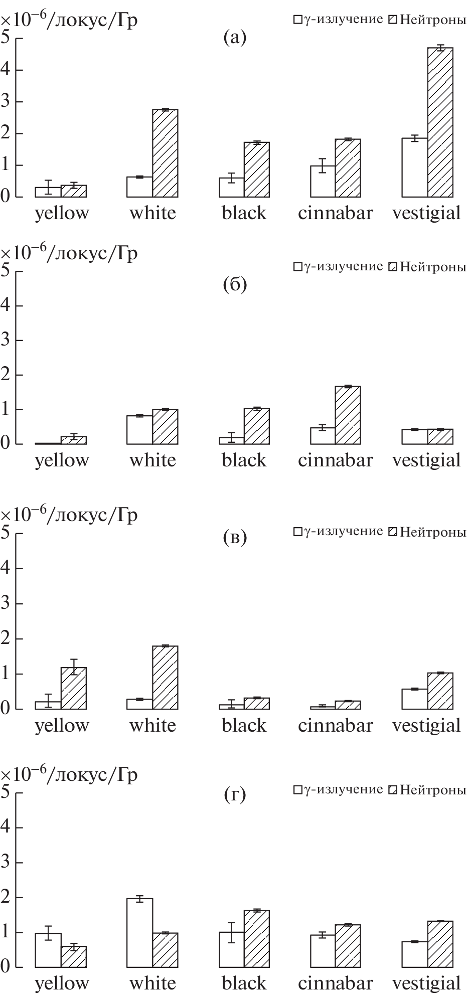The results of large-scale radiation, genetic, cytogenetic and molecular genetic studies on the nature and frequency of heritable mutations of two sex-linked and three autosomal genes of Drosophila melanogaster after exposure to 60Co γ-rays and 0.85 MeV neutrons are presented. Regularities were established for studied genes and radiations in the induction of five different types of recessively inherited mutations, which can be combined into two main classes - the class of chromosomal mutations in one way or another affecting the gene under study (changes leading to sterility of F1 mutants, multilocus deletions, inversion or translocation breakpoint chromosome in the region of gene localization) and a class of “point” gene mutations with a complex spectrum of DNA changes detected by PCR and sequencing. In this report, the results of classical genetic and cytogenetic analysis of these classes of mutations are considered in detail and the frequency of their induction by γ-rays or neutrons is estimated per locus per dose unit (1 Gy). An important and unexpected result of the assessment was the fact that the frequency of “point” mutations turned out to be invariant (on average 1.15 E-06/locus/Gy) for the studied genes and radiations, in contrast to chromosomal mutations, where a pronounced locus-specificity is observed for individual types of mutations. At the same time, neutrons are two or more times more effective than γ-rays in inducing this class of mutations. It is significant that the ave-rage frequency of “point” mutations induction correlates with the average cDNA length of these genes (1.62 kb), but not with their average size (6.07 kb), indicating that the target for " point mutations is, obviously, not the entire DNA of the gene, but only the informational part of its exons. The dependence of the frequency of chromosomal mutations of one type or another on the position of the gene on the chromosome and in the three-dimensional space of the genome is discussed.