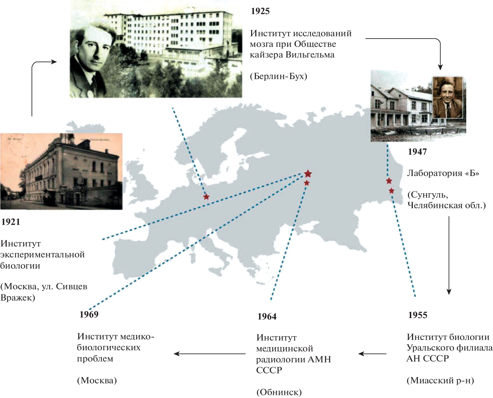The year 2021 was marked with a significant date – 100 years ago, brilliant radiobiologist and geneticist N.V. Timofeeff-Ressovsky started his scientific work. Among the new directions developed by him from 1921 to 1981 were physical biology, basic principles of genetic engineering, amplifier principle, and population radiobiology. It is noteworthy that many of his ideas were developed in the former Department of Radiation Genetics and General Radiobiology of the Institute of Medical Radiology in Obninsk, which is now called the Experimental Sector of the A. Tsyb Medical Radiological Research Centrе. Our work reveals the interconnections of Timofeeff-Ressovsky’s works with the activities of his contemporaries and productive ideas of today.