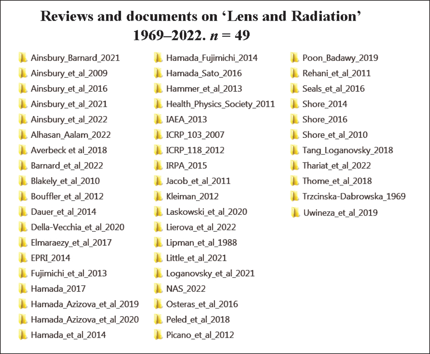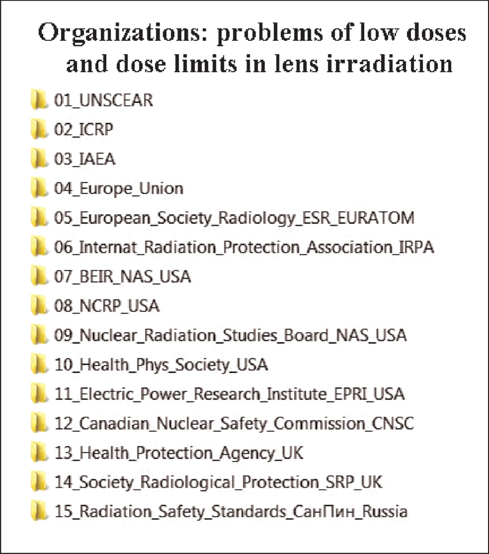 - Ainsbury E.A., Dalke C., Hamada N., Benadjaoud M.A., Chumak V., Ginjaume M. et al. Radiation-induced lens opacities: epidemiological, clinical and experimental evidence, methodological issues, research gaps and strategy // Environ. Int. 2021. V. 146. Art. 106213. 14 p. https://doi.org/10.1016/j.envint.2020.106213