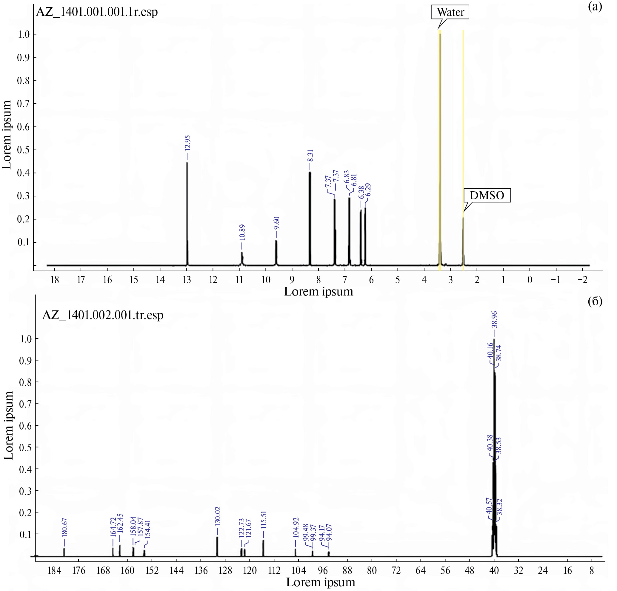 Fig. 2. Nuclear magnetic resonance spectrum of genistein (А – Н1, В – С13).