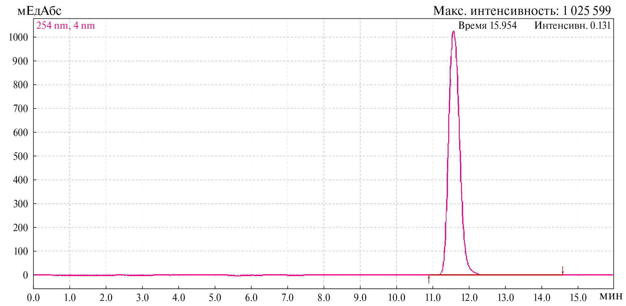 Рис. 3. Хроматограмма генистеина (ВЭЖХ, раствор с концентрацией 0.0805 мг/мл).