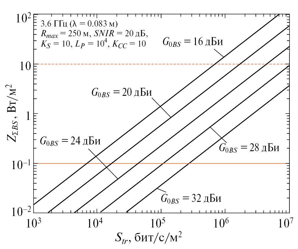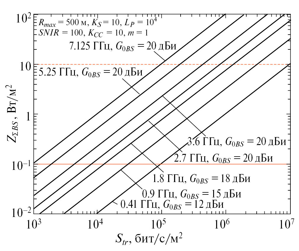 The technique of integral assessment of the radio frequency electromagnetic background (EMB) intensity created by wireless information services is presented, based on the forecast of the average electromagnetic loading on area created by radiations of spatially distributed base stations and mobile terminal devices. This loading can be determined both on the basis of a direct estimate of the average total irradiation power of the Earth’s surface by base stations or the average total radiation power of terminal devices per unit of its area, and on the basis of an estimate of the average area traffic capacity and known parameters of equipment and topology of mobile communication networks. Expressions to estimate the conditional average levels of EMB generated by stationary and mobile components of mobile communication systems, and the results of calculations illustrating the processes of its generation by these systems in different frequency ranges with different average area traffic capacity and different sizes of service areas of base stations are given. These calculations confirm the real danger of an unacceptable decrease in the level of electromagnetic safety of the population and deterioration of the ecology of the habitat without the implementation of scientifically based restrictions on the characteristics of mobile communication systems and services.