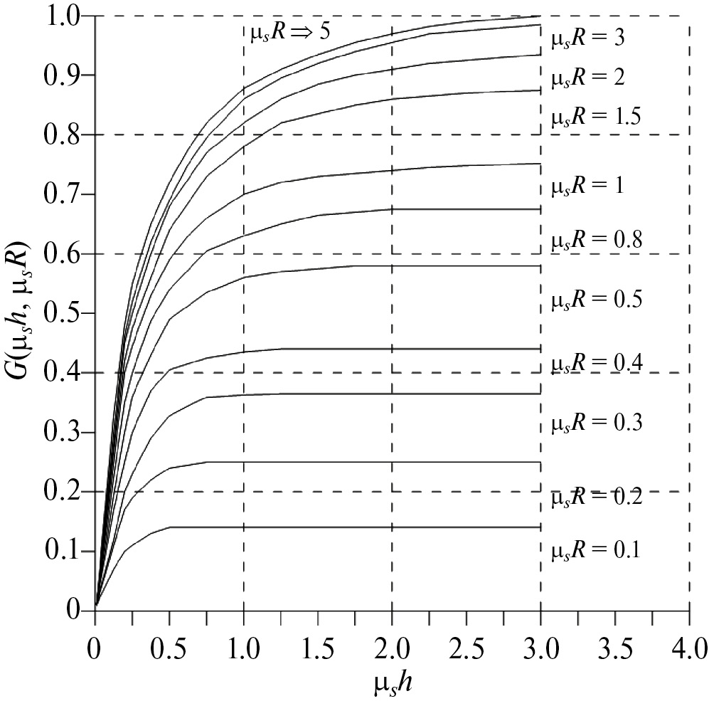 Fig. 2. Function G(m5h, msR): msh in the range from 0 to 3.5 and m5 R from 0.1 to ∞ [35].