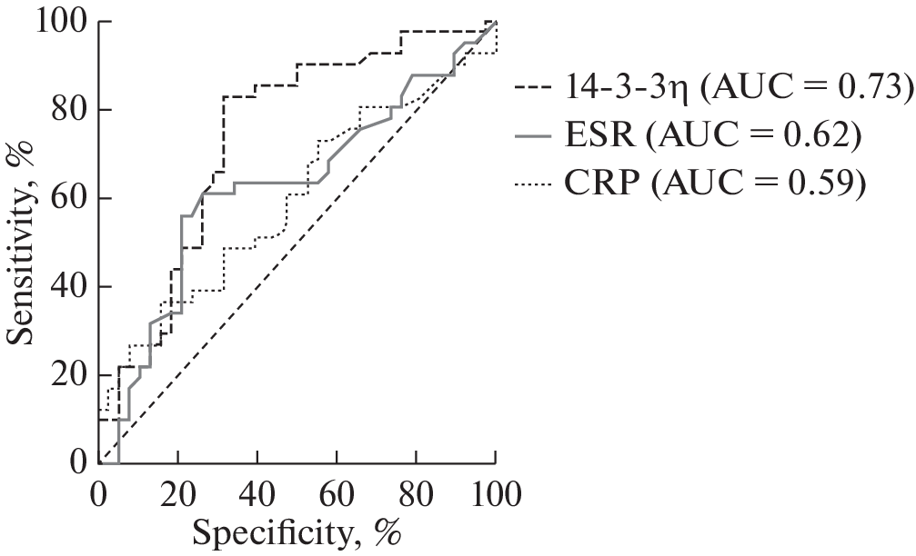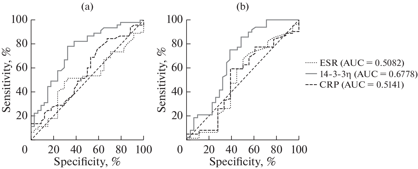 Currently, rheumatoid arthritis routine diagnosis includes joint syndrome indicator determination such as tender and swollen joints count, as well as a number of laboratory indicators. The most interesting are the second ones, which include rheumatoid factor, antibodies to cyclic citrullinated peptide and a some acute-phase indicators, but they have low sensitivity and specificity, especially in the disease early stages, when it is still possible to normalize bring the age-norm indicators and get stable disease remission. Additionally, some of these medical tests are expensive enough and compulsory health insurance not-included. But, most importantly, there are no reliable rheumatologist modern practice disease activity assessing tools depending on the current-used treatment strategy. The article evaluates 14-3-3η protein usage possibility as a promising biomarker for rheumatoid arthritis immuno-inflammatory process activity in joints assessment. It was shown a higher studied indicator informative value (in terms of accuracy, sensitivity, specificity) in comparison with traditional acute-phase indicators, such as the erythrocyte sedimentation rate and C-reactive protein.