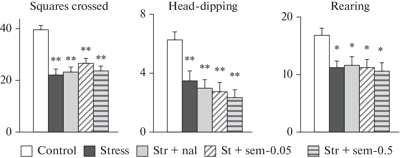- Levitskaya NG, Vilenskii DA, Sebentsova EA, Andreeva LA, Kamensky AA, Myasoedov NF (2010) Influence of semax on the emotional state of white rats in the norm and against the background of cholecystokinin-tetrapeptide action. Biol Bull 37(2): 186–192. https://doi.org/10.1134/S1062359010020147