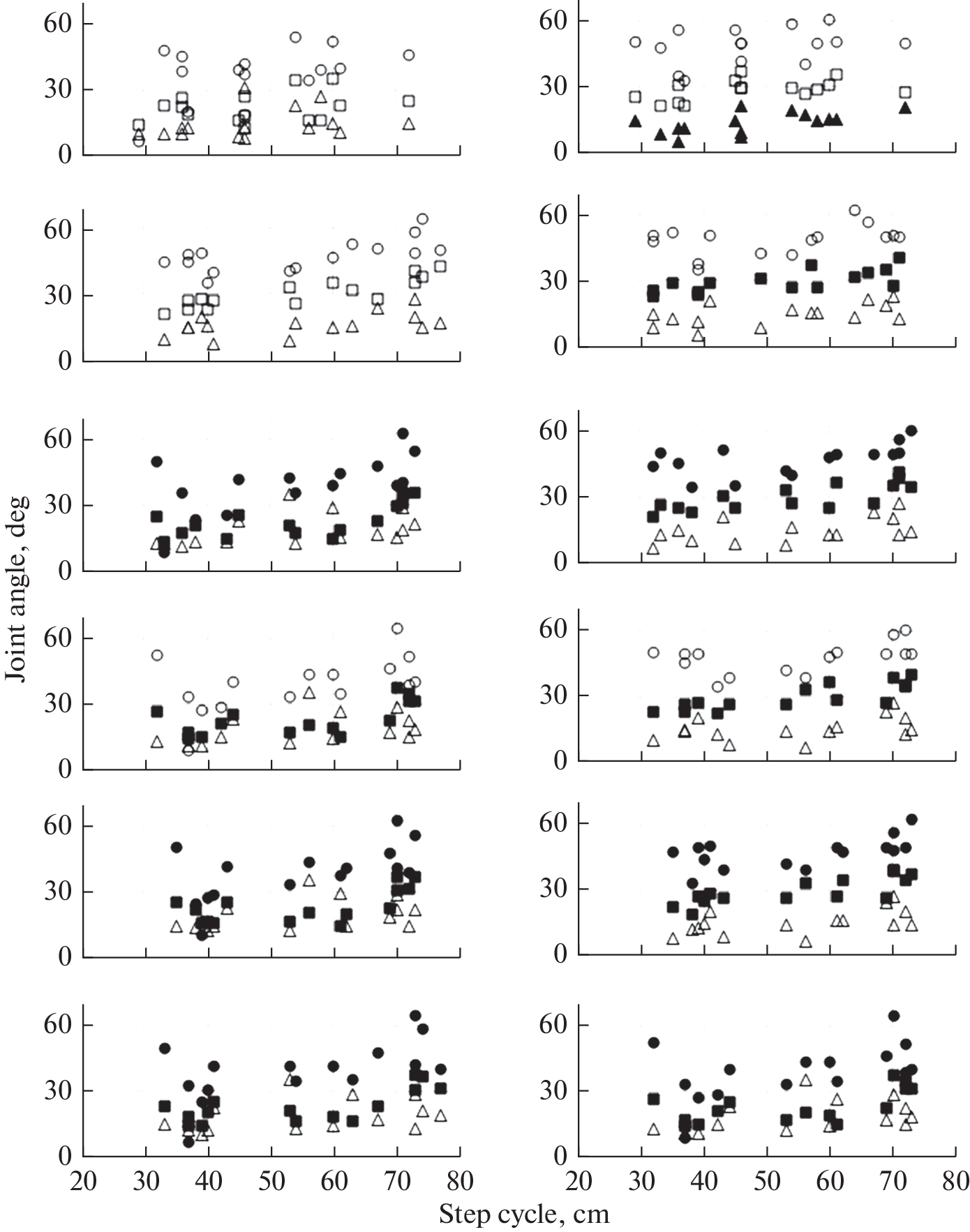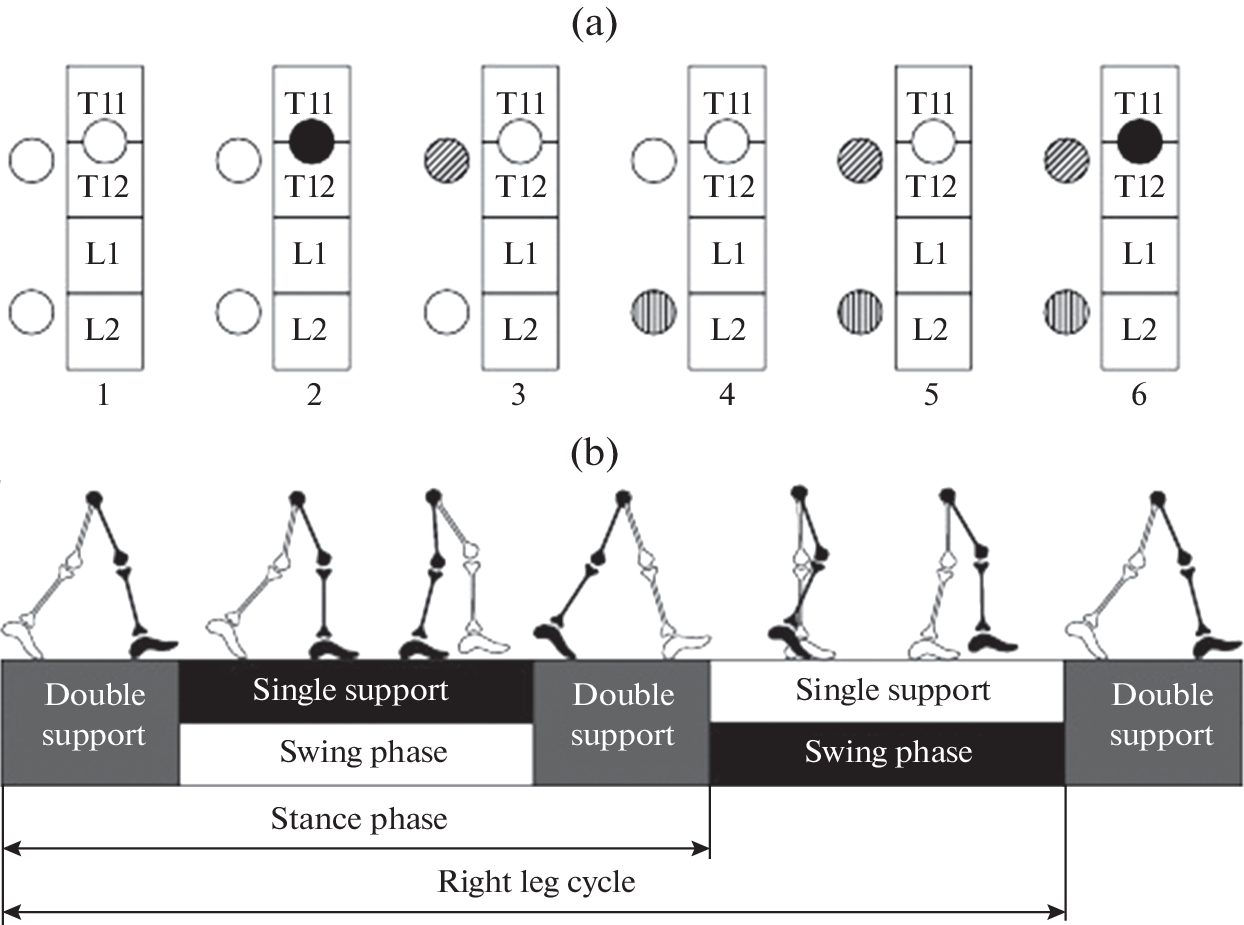 Мультисегментарная чрескожная электрическая стимуляция спинного мозга (ЧЭССМ), воздействующая на спинальные нейронные сети и моторные пулы мышц ног, применялась для коррекции ходьбы по беговой дорожке у пациентов, перенесших инсульт. В исследовании принимали участие 15 пациентов в восстановительном периоде после острого нарушения мозгового кровообращения. Неинвазивный спинальный нейропротез с многоканальным стимулятором для ЧЭССМ и системой детектирования фаз шагательного цикла (“Косима”, Россия) использовался для активации моторных пулов мышц-сгибателей ноги в фазе переноса, активации моторных пулов мышц-разгибателей в фазе опоры в сочетании с непрерывной активацией спинальных локомоторных сетей. Применение ЧЭССМ при ходьбе по беговой дорожке вызывало увеличение амплитуды движений в голеностопном суставе и длины цикла шага на стороне пареза, а также уменьшение асимметрии в фазах шага обеих ног. У 80% пациентов возрастал подъем паретичной ноги над опорой. При сочетании непрерывной и фазозависимой стимуляций увеличение размаха движения в суставах было максимальным по сравнению с только фазозависимой или только постоянной стимуляцией. Полученные данные демонстрируют, что предложенный алгоритм ЧЭССМ модулирует параметры шагательных движений у пациентов с последствиями нарушения мозгового кровообращения и может рассматриваться как перспективный метод двигательной реабилитации.