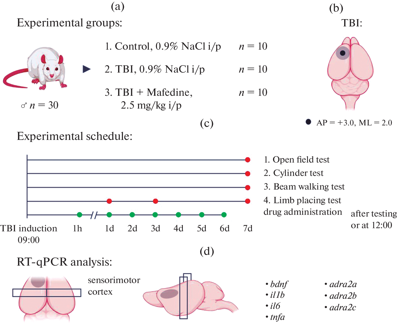 - Сысоев ЮИ, Дагаев СГ, Кубарская ЛГ, Гайкова ОН, Узуегбунам БЧ, Модисе К, Маквана ТЛ, Оковитый СВ (2019) Нейропротекторная активность агониста альфа-2 адренорецепторов мафедина на модели черепно-мозговой травмы у крыс. Биомедицина 15(1): 62–77. [Sysoev YuI, Dagaev SG, Kubarskaja LG, Gaikova ON, Uzuegbunam BC, Modise K, Makwana TL, Okovitiy SV (2019) Study of the neuroprotective activity of mafedine, an alpha-2 adrenergic receptor agonist, by modeling a traumatic brain injury in rats. J Biomed 15(1): 62–77. (In Russ)]. https://doi.org/10.33647/2074-5982-15-1-62-77