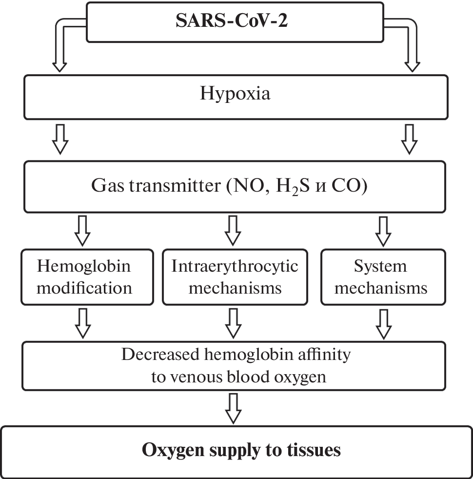 The development of coronavirus infection prevents the transport of oxygen to the tissues through the mechanism of impaired hemoglobin saturation in the damaged lung. The change in the affinity of hemoglobin for oxygen, which is the most important factor in compensating for oxygen deficiency in various pathological conditions, underlies the processes of adaptation to hypoxia. The question of the significance of the shift in the oxyhemoglobin dissociation curve in this pathology is actively discussed, in which its shift to the left in the arterial blood and its shift to the right in the venous blood are noted, which in the conditions of the development of the hypoxic syndrome reflects the a-ctivation of the body’s mechanisms to compensate for oxygen deficiency. The change in its position is not specific for this pathology, but is determined by the severity of oxygen deficiency and the imbalance of the mechanisms of the cardiorespiratory system, as well as the peculiarities of the status of patients and the analyzed blood sample.