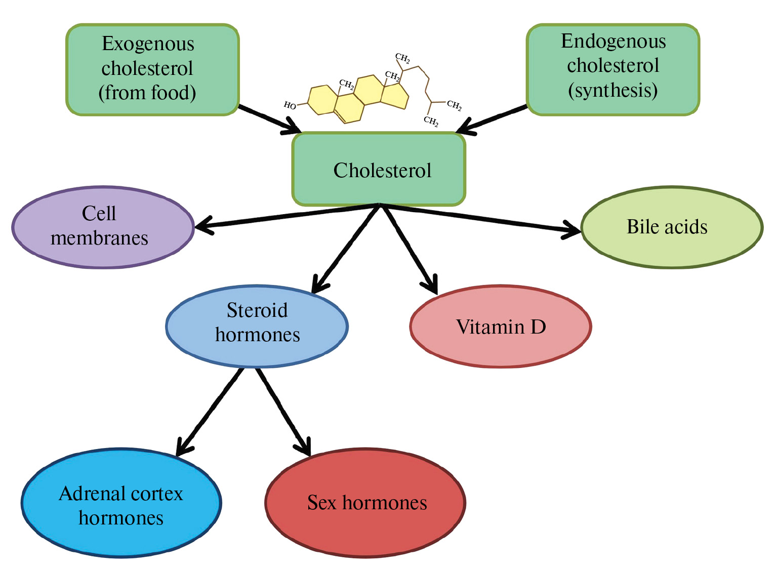 Рис. 1. Биологическая роль холестерина.