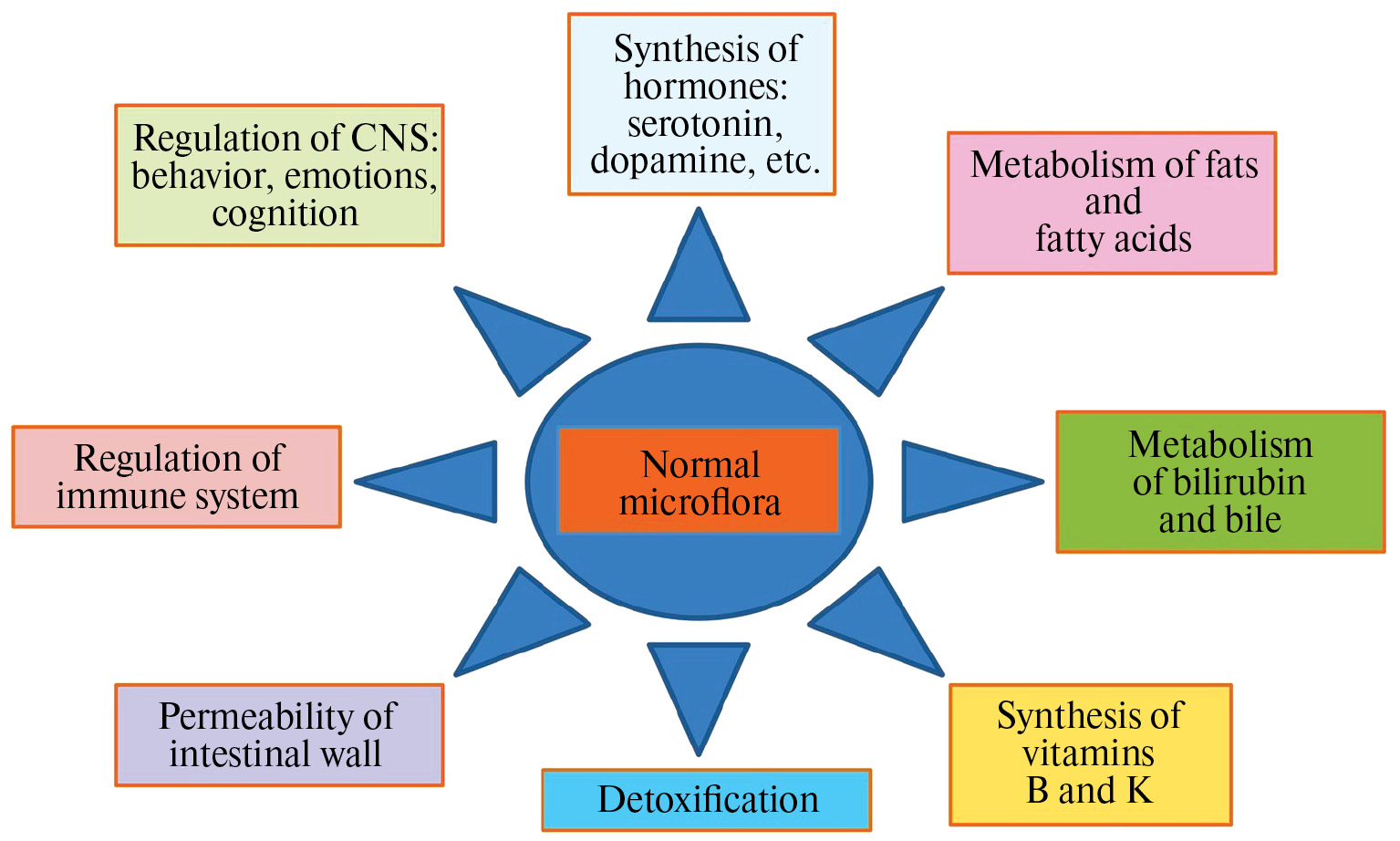 Рис. 4. Функции нормальной микрофлоры кишечника. CNS – центральная нервная система.
