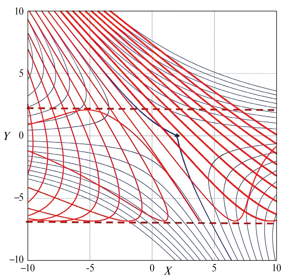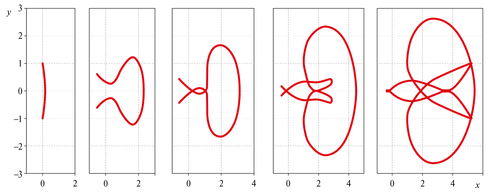 Значительный вклад в понимание формирования особенностей плотности и каустик на границах областей пересекающихся траекторий частиц в средах без давления внесли труды В.И. Арнольда и его последователей (см., например, работу [7]). В указанных работах была проведена классификация основных типов возникающих каустик и сингулярностей плотности в двумерных и трехмерных течениях сред без давления, однако при этом изучались лишь движения сред по инерции либо в потенциальных силовых полях.