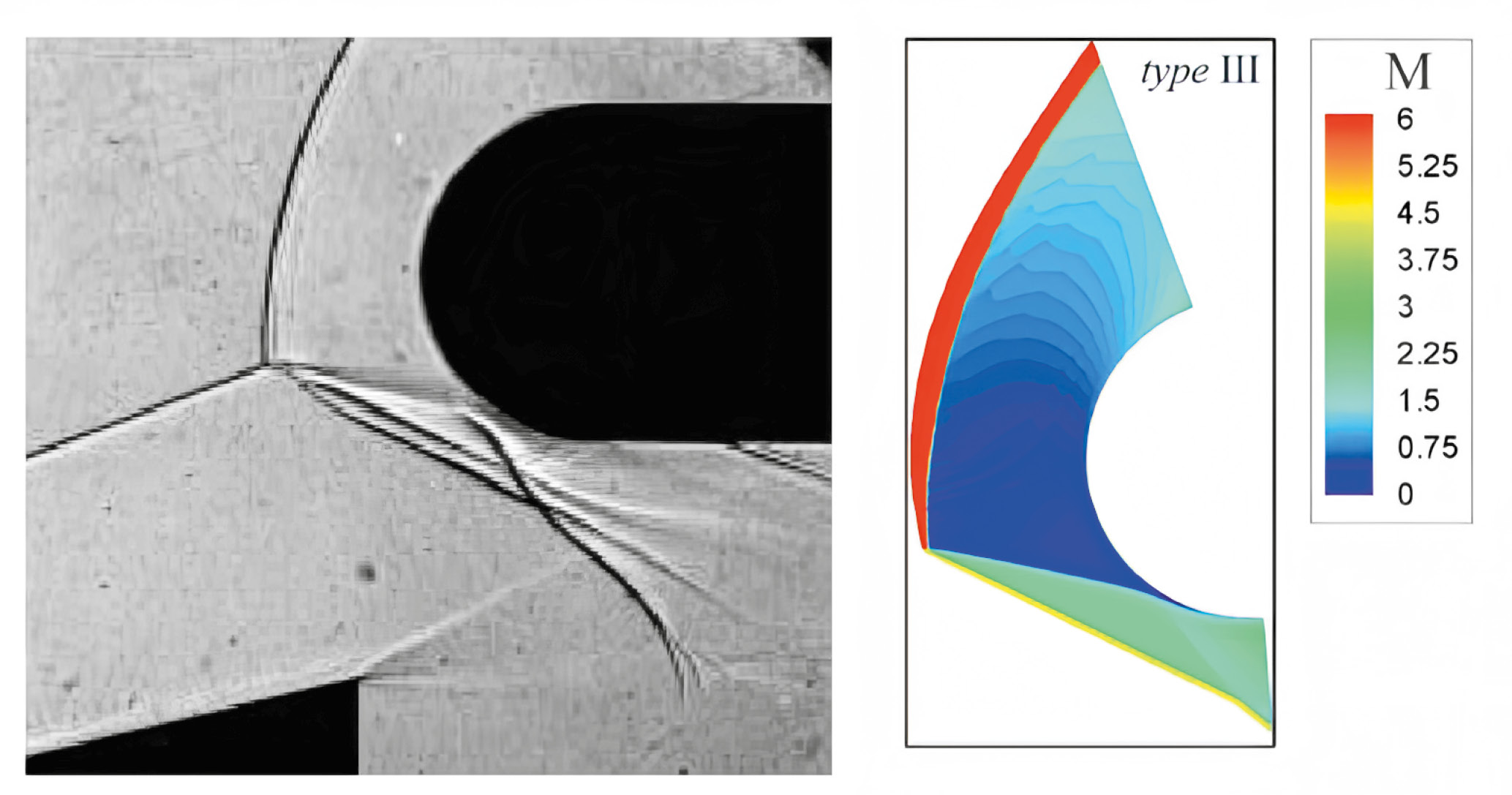- Borovoy V.Ya., Chinilov A.Yu., Gusev V.N., Struminskaya I.V., Délery J., Chanetz B. Interference between a cylindrical bow shock and a plane oblique shock // AIAA J. 1997. V. 35. № 11. P. 1721–1728. https://doi.org/10.2514/2.41.