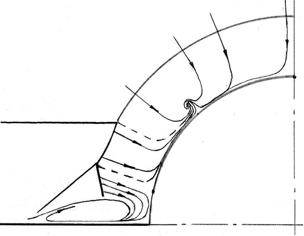 Выяснено, что линия растекания на поверхности полуконуса в окрестности линии пересечения поверхностей не является, вопреки имеющемуся в литературе представлению, линией присоединения оторвавшегося на пластине потока, а есть следствие локального влияния на течение области отрыва на пластине, близко расположенной к поверхности центрального тела.
