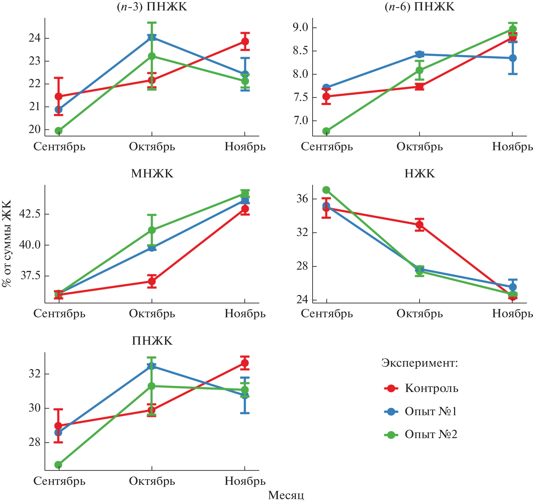 - Tocher D.R., Fonseca-Madrigal J., Bell J.G., Dick J.R., Henderson R.J., Sargent J.R. Effect of diets containing linseed oil on fatty acid desaturation and oxidation in hepatocytes and intestinal enterocytes in Atlantic salmon (Salmo salar) // Fish Physiol. Biochem. 2002. V. 26. P. 157–170.