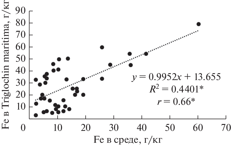 The accumulation of iron in halophytic species Triglochin maritima L., Plantago maritima L., Aster tripolium L. and Zostera marina L. was studied in this research. Littoral soils are not contaminated with iron (6–16 g/kg). Seawater, on contrary, contains high concentrations of iron (0.04–0.32 mg/l). Halophytes accumulate iron to supervalues (6.49–71.63 г/кг), 93% of metal is found in rhyzomes. The reasons for this phenomenon are discussed. Halophytes of the White Sea littoral zone are involved in the biogeochemical iron cycle as the main fixation sites of iron in the system “coast–sea”. They have phytoremediation potential on the coastal territories.