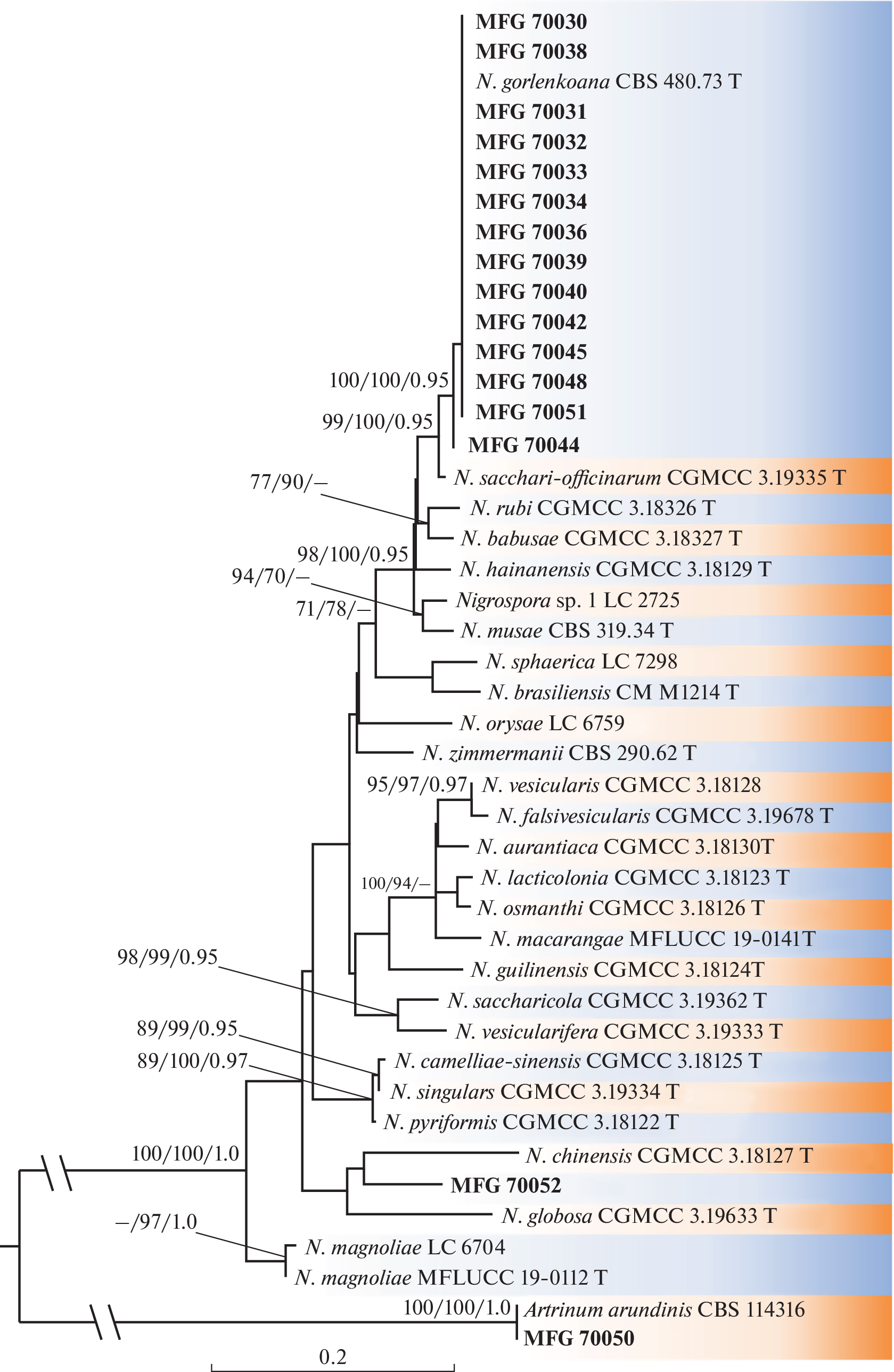 - Wang M., Liu F., Crous P.W., Cai L. Phylogenetic reassessment of Nigrospora: ubiquitous endophytes, plant and human pathogens // Persoonia. 2017. V. 39. P. 118–142.