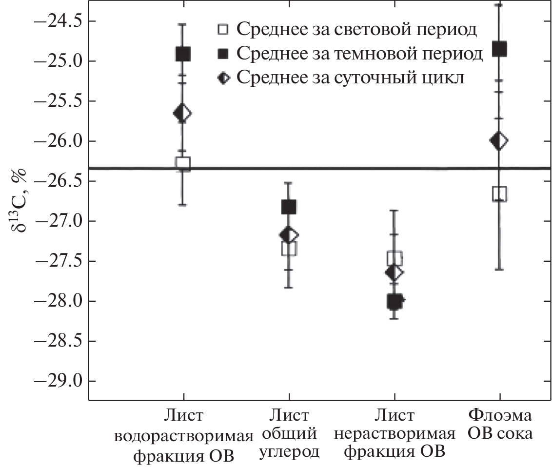 - Gessler A., Tcherkez G., Peuke A.D., Ghashghaie J.G., Farquhar G.D. Experimental evidence for diel variations of the carbon isotope composition in leaf, stem and phloem sap organic matter in Ricinus communis // Plant, Cell Environ. 2008. V. 31. P. 941–953.