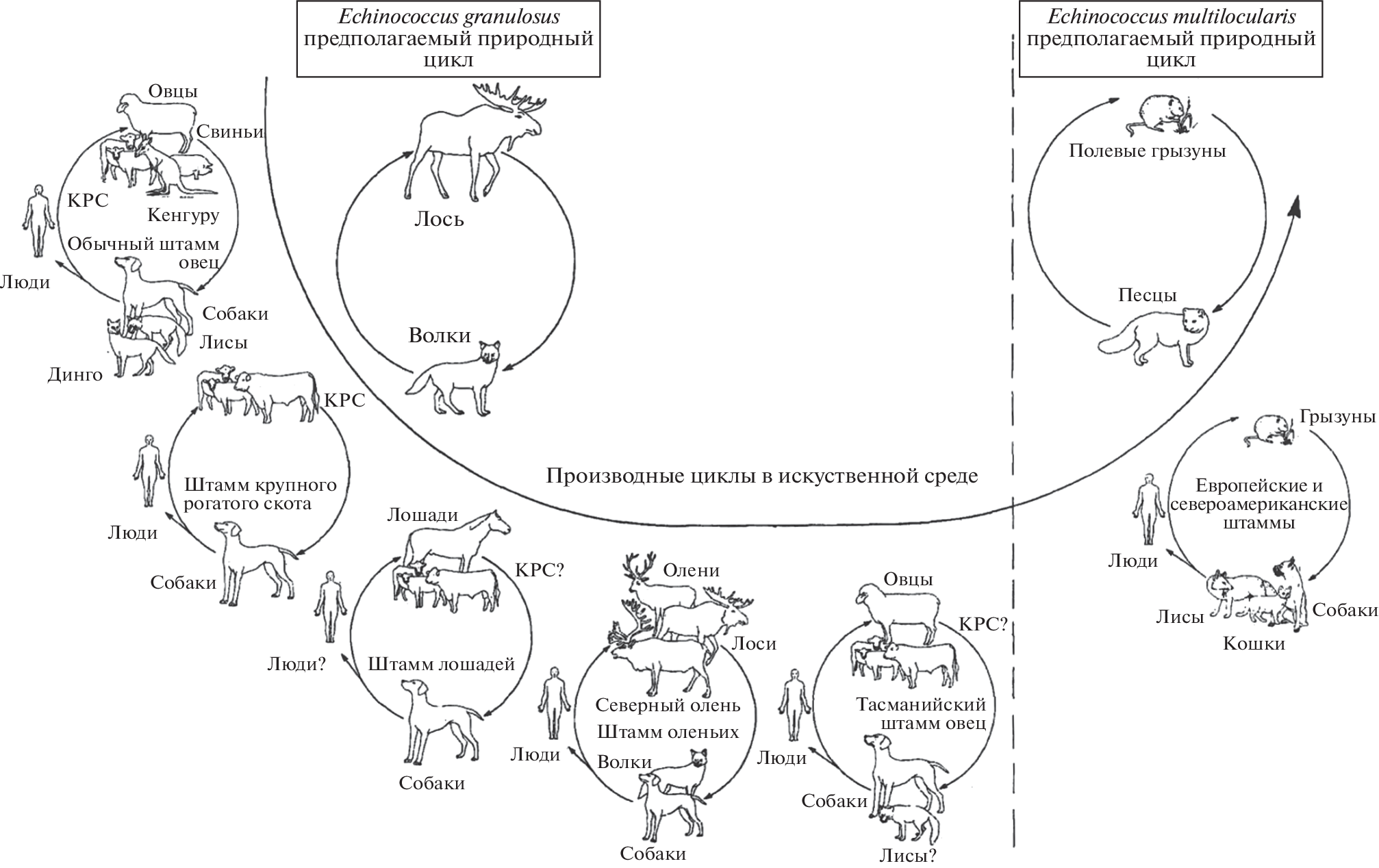 - Thompson R.C.A., McManus D.P. Aetiology: parasites and life-cycles // WHO/OIE Manual on Echinococcosis in Humans and Animals: a Public Health Problem of Global Concern / Eds Eckert J., Gemmell M.F., Meslin F.-X., Pawłowski Z.S. Paris, France, 2001. P. 100–142.