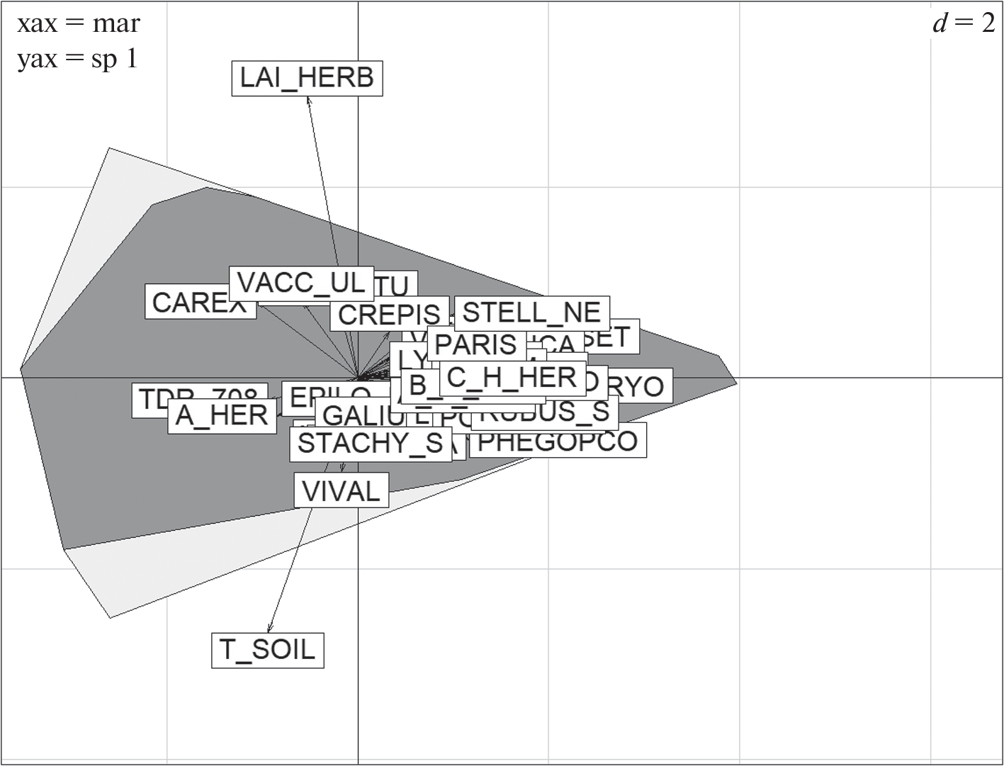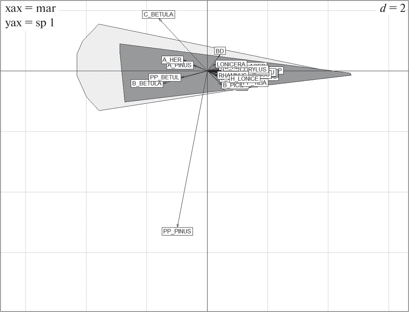 Based on long-term (2010–2014) studies carried out in the forest ecosystems of the Central Forest Biosphere Reserve, two models of the spatial niche of the bank vole (Myodes glareolus Schreber, 1780) were constructed using factor analysis (ENFA). Models with a sufficient level of quality characterize the characteristics of the species’ niche. The modeling results make it possible to describe the structure of the optimal habitat for the bank vole in mosaic southern taiga forests at different levels (scales) of spatial organization.