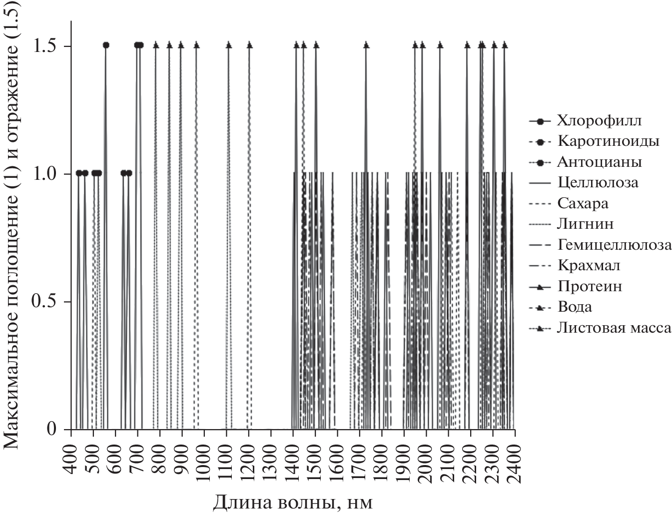 - Carter G.A., Knapp A.K. Leaf optical properties in higher plants. Linking spectral characteristics to stress and chlorophyll concentration // Am. J. Botany, 2001. V. 88(4). P. 677–684.