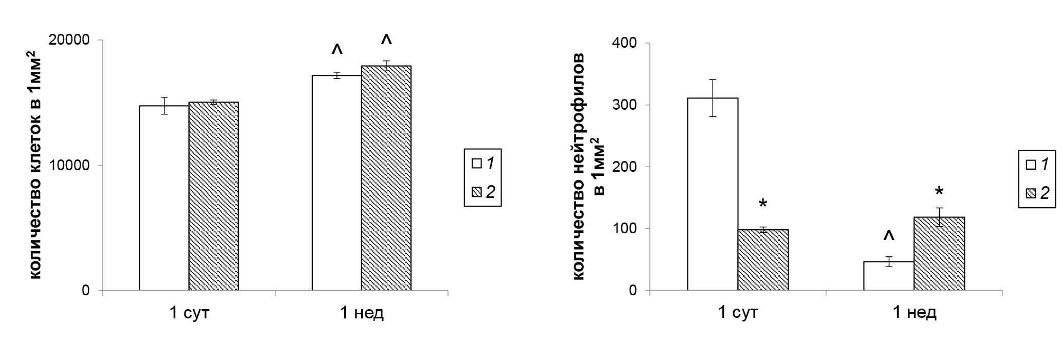 Через неделю у крыс контрольной группы в красной пульпе селезенки появились тонкие соединительнотканные трабекулы. Содержание клеток в красной пульпе увеличилось по сравнению с предыдущим сроком в среднем на 20 %, однако процентное содержание нейтрофилов значительно уменьшилось (рис. 4а, б). Численность мегакариоцитов, напротив, возросла (рис. 4в).