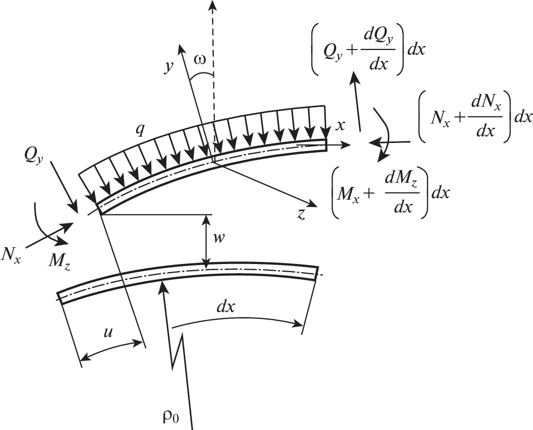 Представленная краткая информация о неожиданном всплытии двух ниток на подводном переходе через Байдарацкую губу на Ямале свидетельствует о том, что при разработке проектов не были проведены полные исследования, посвященные вопросам обеспечения прочности и устойчивости и сохранения в проектном положении газопроводов. Для выявления одной из основных причин всплытия поставлена и решена задача о напряженно-деформированном состоянии подводного участка морского газопровода с учетом частичного и полного обводнения грунта в отдельных подземных частях. Рассматриваемый подводный участок подводного газопровода в расчетной схеме условно делится на три части. В его средней части находится размытая оголенная часть, которая образуется вследствие разжижения и размыва грунта. К ней слева и справа примыкают подземные части. За математическую модель рассчитываемого участка газопровода принимается одномерная стержневая система в упругой среде, состоящая из криволинейных и прямолинейных трехслойных стержней трубчатого сечения и их узлов сопряжения. Напряженно-деформированное состояние стержневого элемента описывается системой дифференциальных уравнений, которая состоит из геометрических и физических нелинейных соотношений, нелинейных дифференциальных уравнений равновесия. Решение поставленной задачи осуществляется методом конечных элементов в перемещениях. Численным экспериментом найдены критические значения параметров эксплуатации и формы изгиба газопровода, предшествующие его всплытию для разных длин размытой оголенной части, изменения состояния грунта в подземных частях и различных значений параметров эксплуатации газопровода.
