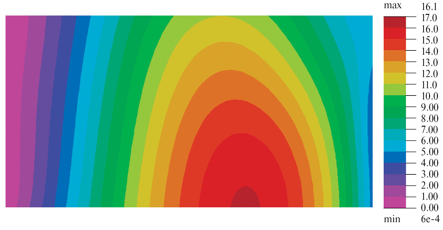 При выборе частоты колебаний до первого резонанса с учетом вида нагружения w1 будет принимать нулевые значения только на защемленной грани. При этом w2 помимо левой грани будет обращаться в ноль еще и в других точках рассматриваемой области. Таким образом, при выборе частоты до первого резонанса выражение , стоящее в знаменателе формулы (4.2), будет обращаться в ноль только в точках, которые принадлежат жестко защемленной грани.