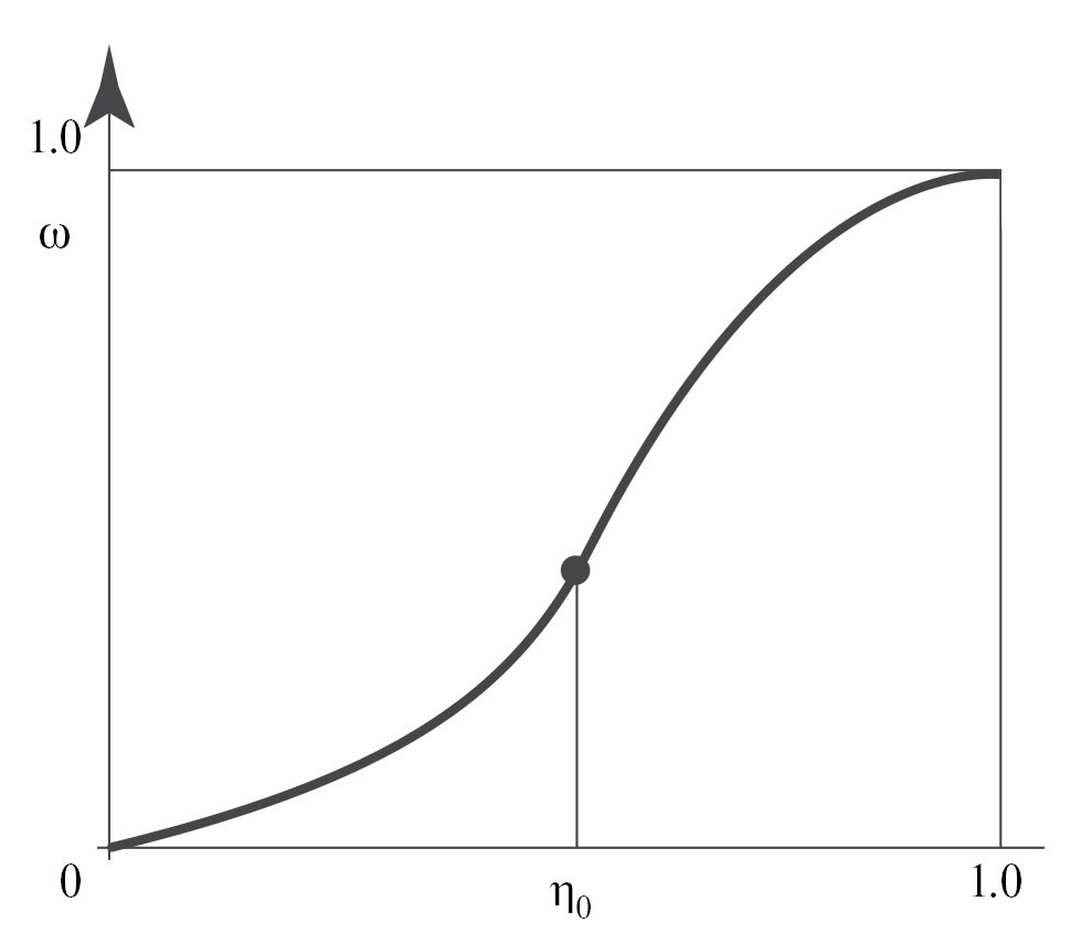 Характер поведения функции ω = ω(η) предусматривает наличие точки перегиба при η = η0, отвечающей за смену типа устойчивости, заложенную в модели (3.6).
