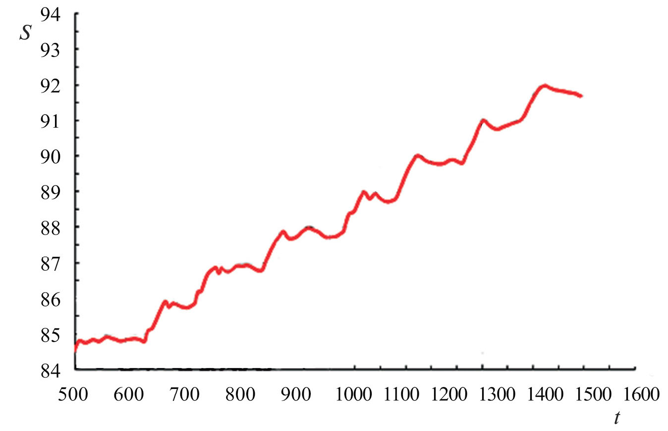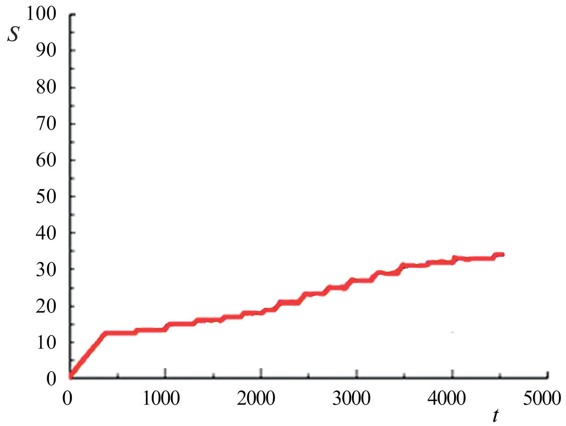Рис. 5. Программа нагружения образца с отверстием 20 мм: S – напряжение обжатия образца, МПа; t – время, с