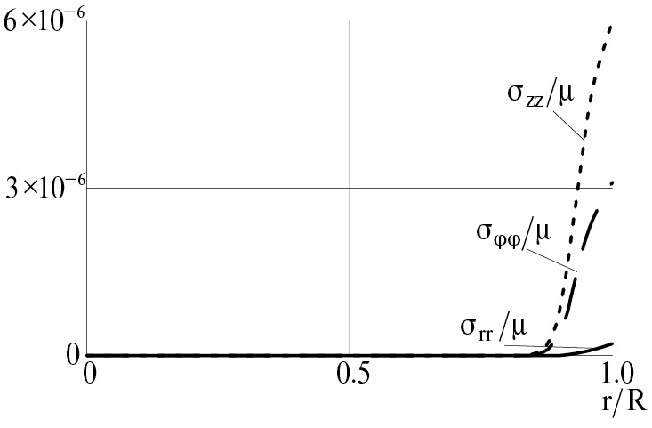 Данные соотношения записаны с точностью до слагаемых первого порядка малости по компонентам обратимых деформаций mrr и mzz и второго – по компоненте mrz [16–19].