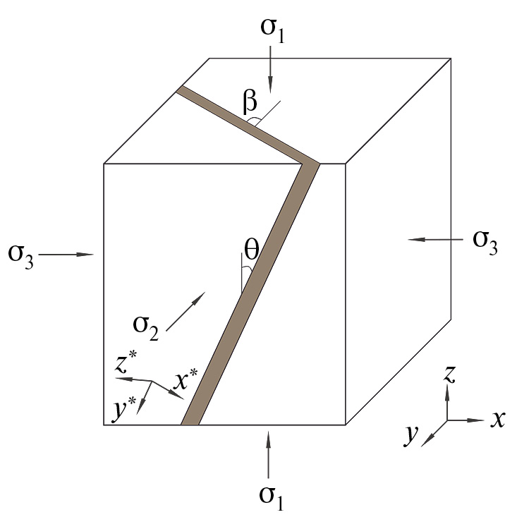 1. Введение. Ориентация и величина главных напряжений существенно влияют на прочностные свойства и в целом деформационное поведение горных массивов в процессе подземного строительства и разработки полезных ископаемых. В естественных условиях залегания горные породы осадочной толщи и кристаллического фундамента находятся в трехмерном напряженно-деформированном состоянии под действием главных напряжений s1 ≥ s2 ≥ s3, где s1, s2, s3 – максимальное, промежуточное и минимальное главные напряжения. При решении практических задач, как правило, используют двумерные критерии прочности (например, критерий Кулона–Мора), предполагая равенство двух из трех главных напряжений, и, таким образом, игнорируя влияние на деформационное поведение горных пород промежуточного главного напряжения.