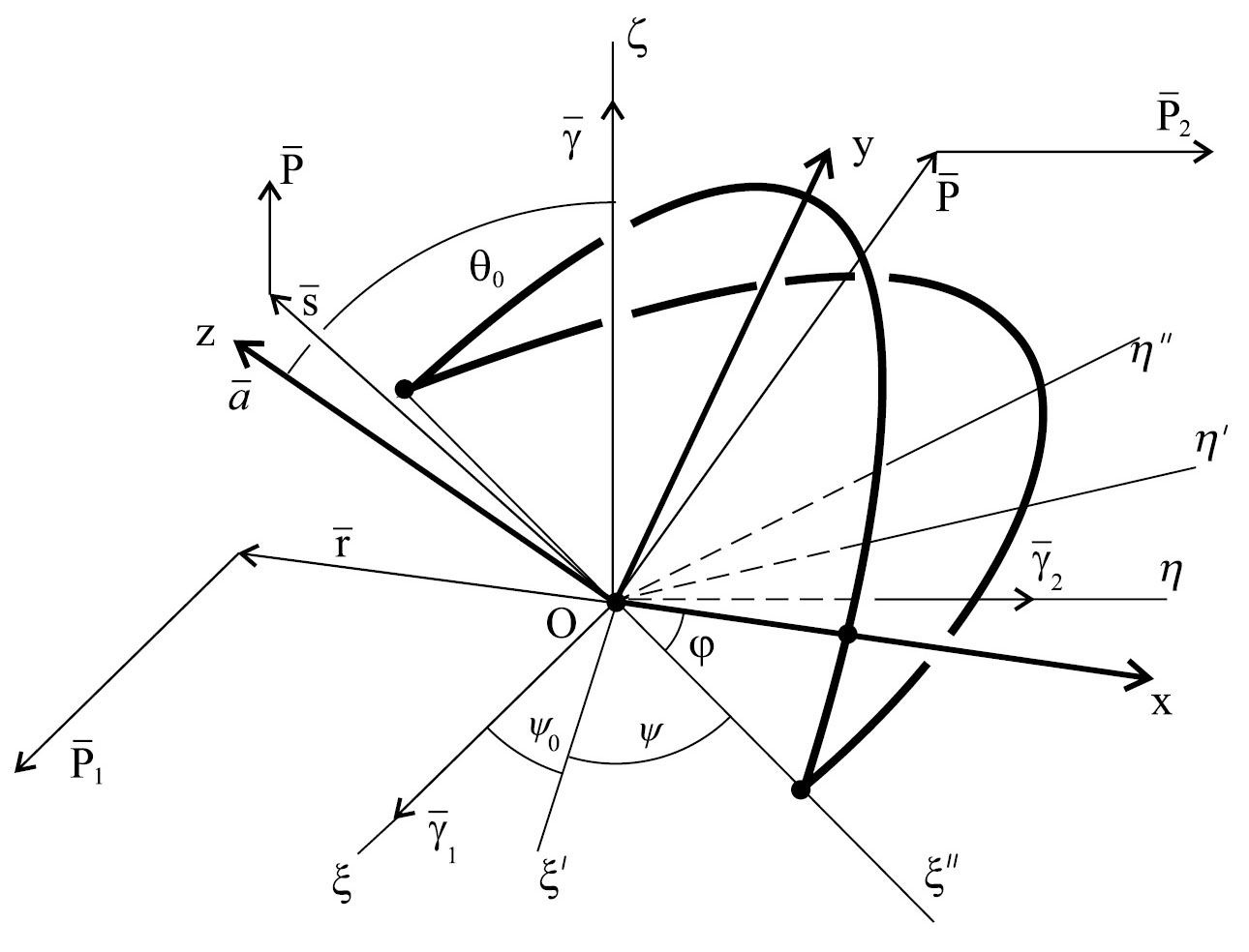 На рисунке приведена геометрическая трактовка прецессий тела относительно вектора γ(Oξης – неподвижная система координат).