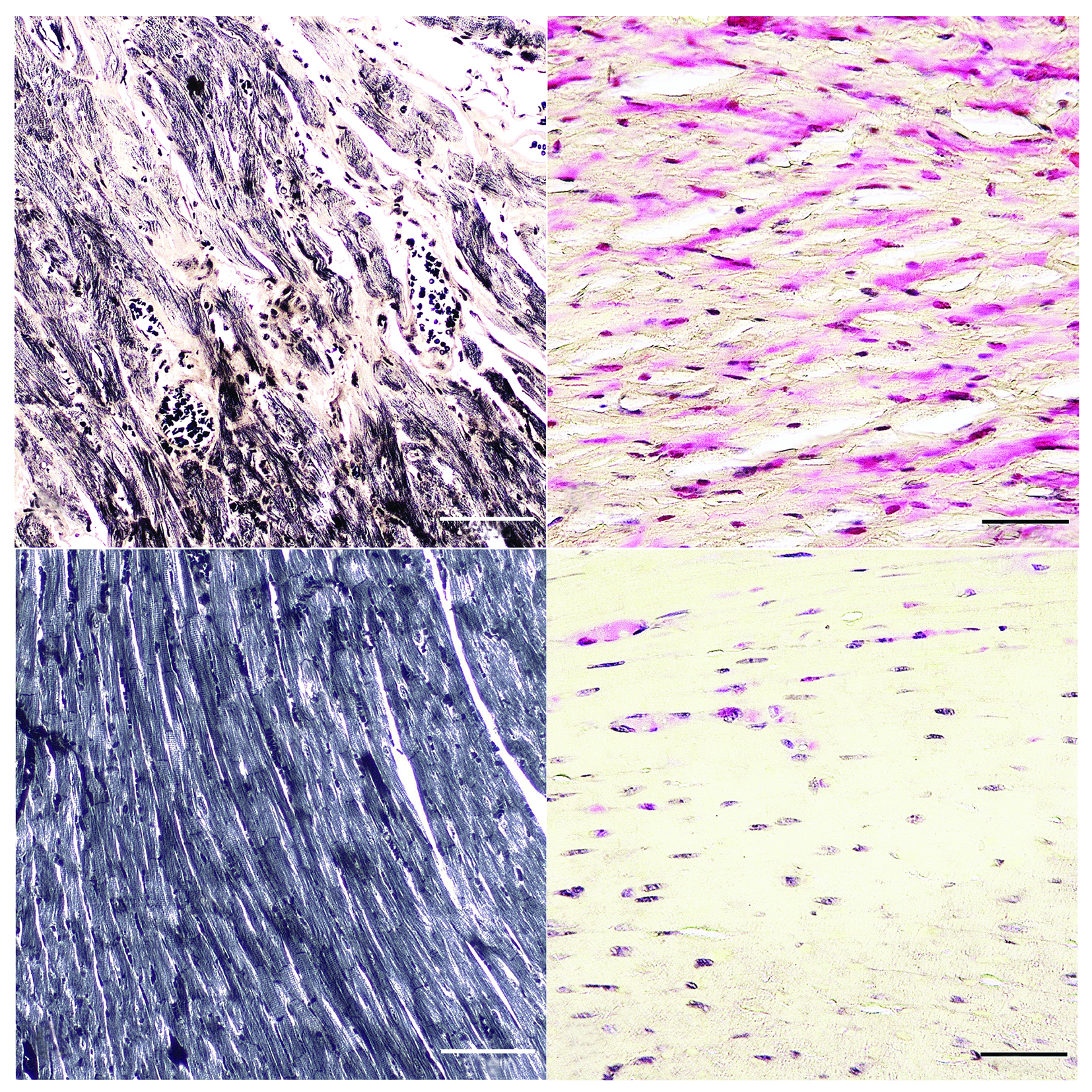 Paraffin sections of the myocardium were stained with hematoxylin and eosin and iron hematoxylin according to Rego to assess the preservation of the striated muscle tissue of the myocardium [19], and hematoxylin–basic fuchsin–picric acid (HBFPA) according to Lee to identify signs of hypoxic damage to cardiomyocytes [19].