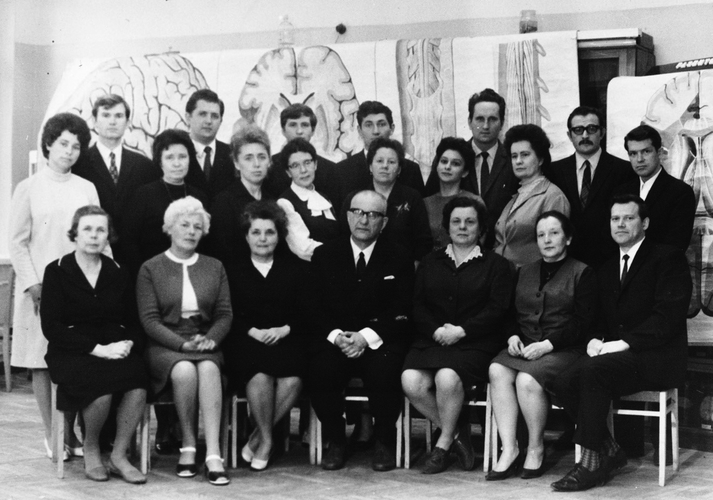 Рис. 2. Коллектив кафедры анатомии человека Ленинградского педиатрического медицинского института и слушатели факультета последипломного образования, весна 1972 года. Н. Р. Карелина — во втором ряду, третья справа налево.
