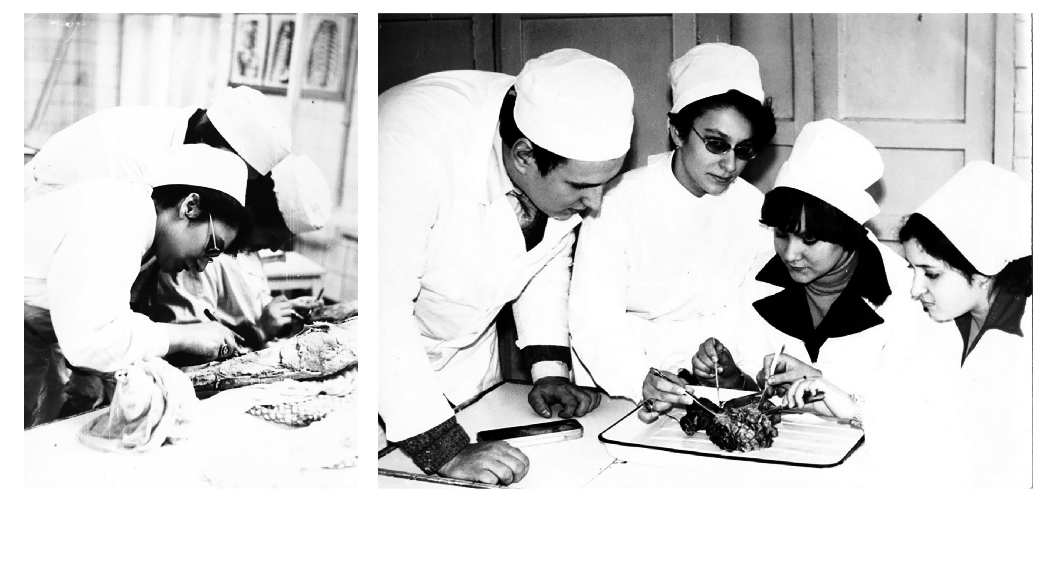Рис. 4. Н. Р. Карелина препарирует и проводит практическое занятие по анатомии человека, 1970-е годы.