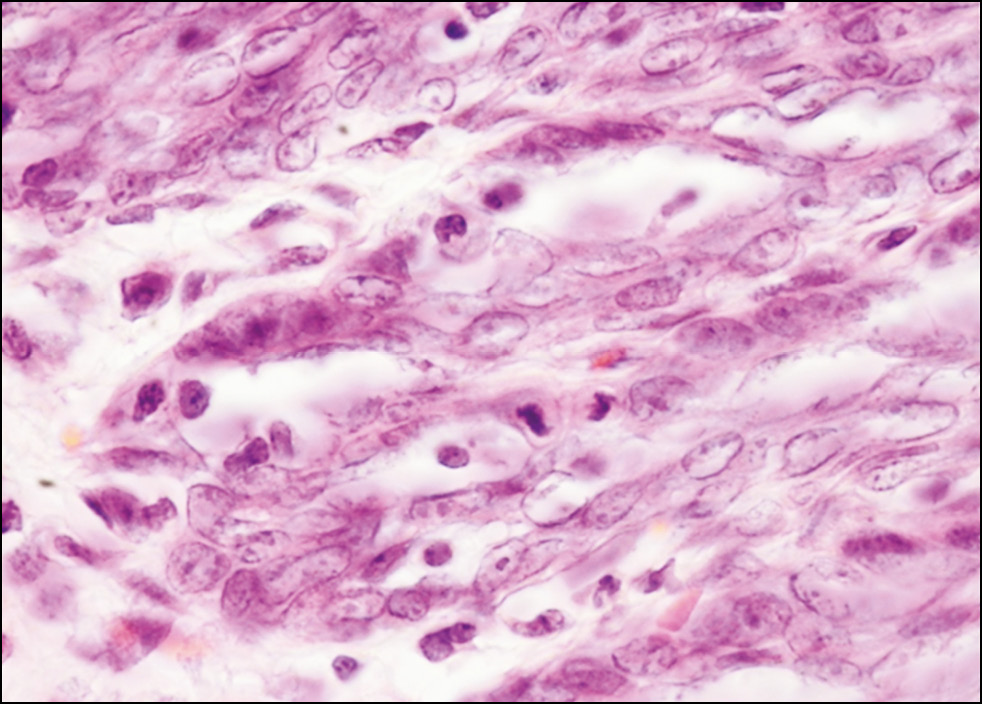 Fig. 4. Disorganization of the stratified epithelium and disruption of the epithelial layer in a 15-day-old rat embryo. Hematoxylin and eosin staining, ×1000 magnification (oil immersion).