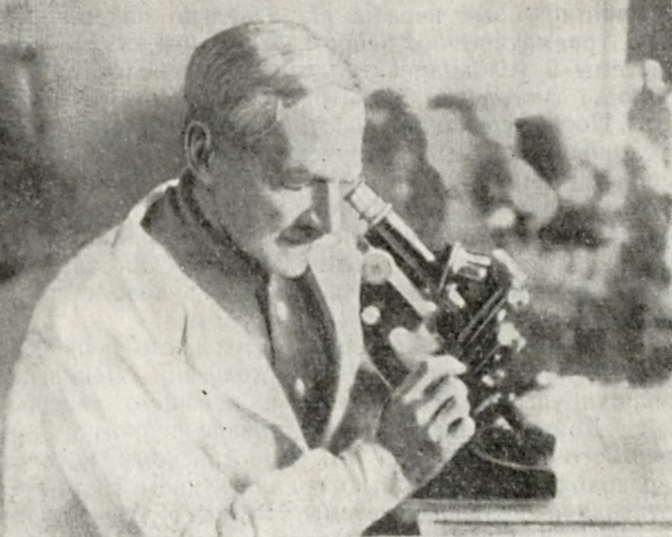 Рис. 2. Профессор кафедры невропатологии Б.С. Дойников за микроскопом. Вторая половина 1940-ых годов. Заимствовано из [2].