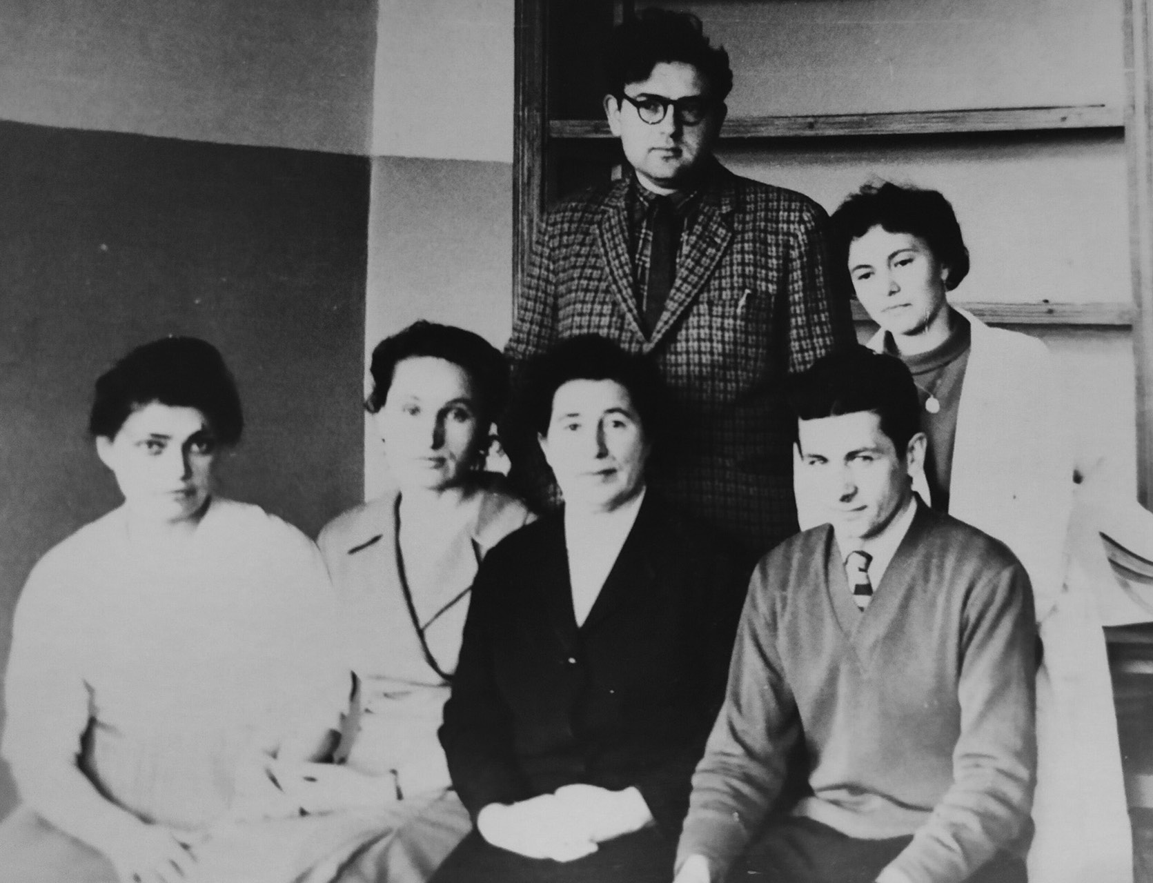 Fig. 2. The staff of the Department of Histology of the Orenburg Medical Institute (1964): top row — graduate student Bazhanov Alexander Nikolaevich, assistant Abdrashitova Emina Hamidovna; bottom row — assistant Savitskaya Lyudmila Andreevna, associate Professor Volodina Evgeniya Petrovna, Professor, head of the Department Zoya Sergeevna Khlystova, graduate student Semchenko Yuri Petrovich. Photo from the archive of the Department of Histology Orenburg Medical University.
