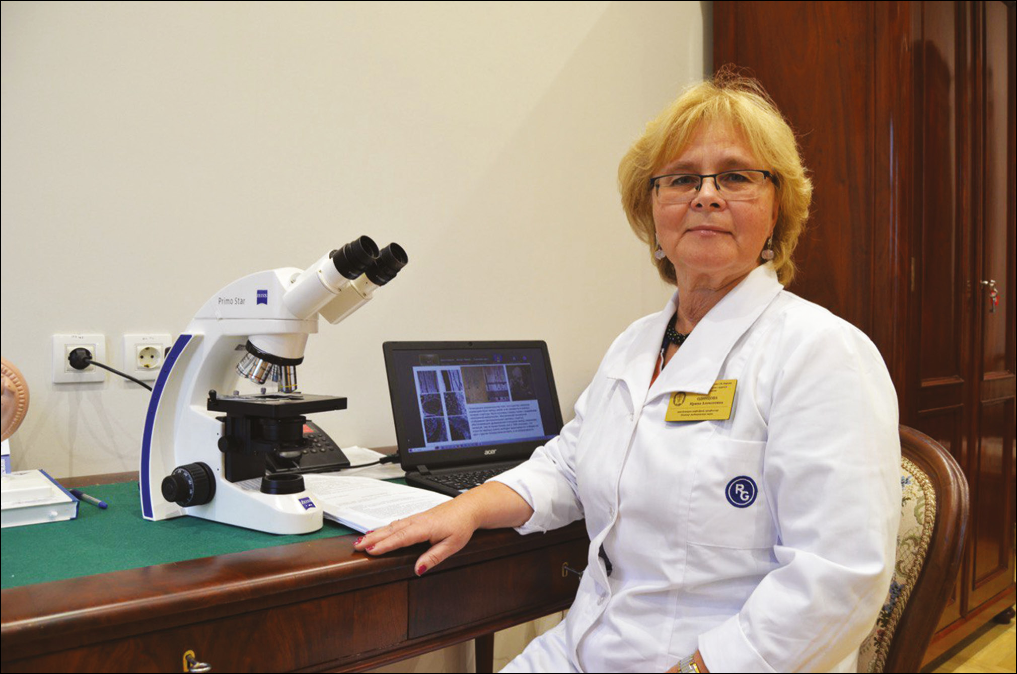 Ирина Алексеевна Одинцова (рис. 1) родилась 28 июня 1960 года в городе Каменск-Уральский Свердловской области. Детство и первые школьные годы прошли в маленьком уральском городке Ивдель, получившем своё название от одноимённой реки, на берегах которой он расположен. Семья часто переезжала, поскольку отец Ирины Алексеевны — Алексей Тихонович — был военнослужащим. Сменялись школы, появлялись новые друзья и новые учителя — так формировался характер. Затем были интересные, насыщенные студенческие годы в Ленинградском санитарно-гигиеническом институте (ныне — Северо-Западный государственный медицинский университет имени И.И. Мечникова). В 1983 году, сразу после окончания вуза, молодая выпускница пришла работать на кафедру гистологии с курсом эмбриологии Военно-медицинской академии имени С.М. Кирова (ВМедА), с которой оказался связан весь её дальнейший трудовой путь. Ирина Алексеевна прошла все ступени карьерной лестницы — от старшего лаборанта до преподавателя, доцента, профессора и заведующего кафедрой. Первым руководителем и учителем И.А. Одинцовой был профессор Алексей Андреевич Клишов. Под его руководством она приобрела навыки преподавания и сделала первые шаги в научно-исследовательской работе. В 1984 году Ирина Алексеевна поступила в очную аспирантуру при кафедре гистологии с курсом эмбриологии ВМедА. Итогом обучения в аспирантуре стала успешная защита кандидатской диссертации на тему: «Ультраструктурная организация, дифференцировка и реактивные изменения гландулоцитов эпителия слизистой оболочки желудка» (1989 год). Научным консультантом докторской диссертации Ирины Алексеевны стал ещё один её учитель — профессор Ревхать Константинович Данилов, который принял заведование кафедрой гистологии с курсом эмбриологии ВМедА в 1991 году от своего учителя, профессора А.А. Клишова. Такая преемственность позволяет сохранять и продолжать традиционные эволюционно-гистологические исследования гистогенеза и регенерации тканей, основа которых была сформирована при выдающихся предшественниках и руководителях кафедры — А.А. Заварзине, Н.Г. Хлопине, С.И. Щелкунове. Экспериментально-гистологические исследования И.А. Одинцовой в тот период были посвящены изучению регенерации тканей после механических и огнестрельных повреждений. Итоги этой работы были обобщены в докторской диссертации на тему: «Регенерационный гистогенез в кожно-мышечной ране (экспериментально-гистологическое исследование)», которую она защитила в 2005 году. В том же году Ирине Алексеевне была присвоена учёная степень доктора медицинских наук, а в 2009 году — учёное звание профессора. На сегодняшний день научные интересы профессора И.А. Одинцовой включают изучение проблем гистогенеза и регенерации тканей, функционально-гистионной организации посттравматического гистогенеза в огнестрельной кожно-мышечной ране, а также межтканевых корреляций.