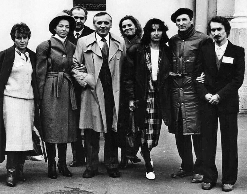Рис. 2. Международный симпозиум “Физиология гипофизарно-адренокортикальной системы”, Ленинград, Институт физиологии им. И.П. Павлова РАН, 1990. У здания института. Слева направо: Т.Р. Багаева, Л.П. Филаретова, Н.Н. Дыгало, проф. Махо (Братислава), участник симпозиума, Даниэла Йезова (Братислава), А.А. Филаретов, Ю.Г. Балашов