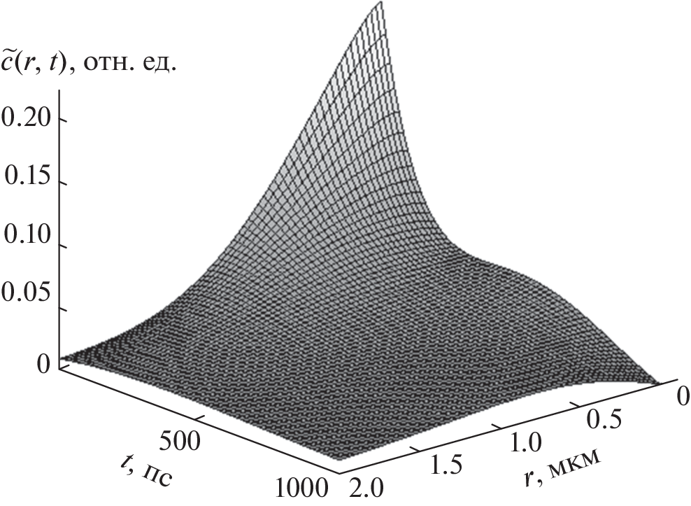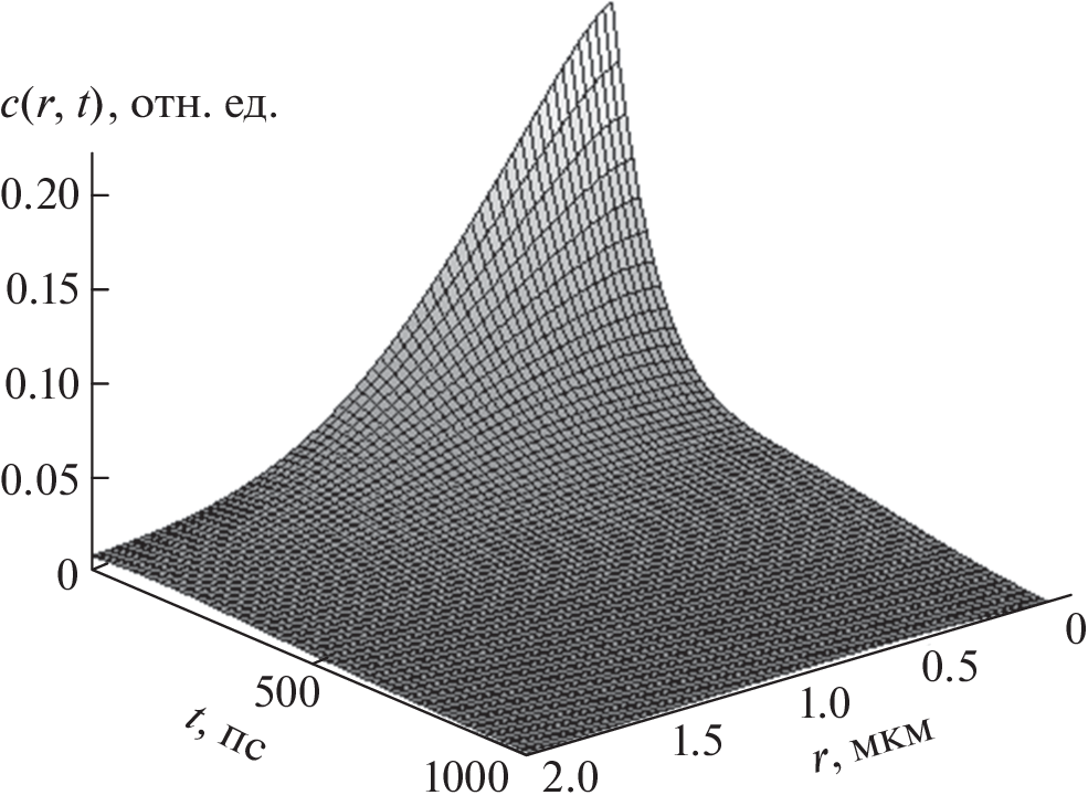 The time dependence of the concentration of nonequilibrium minority charge carriers generated in a homogeneous semiconductor material by a sharply focused electron beam, an electron probe, after the target irradiation is described. A mathematical model is constructed for the nonstationary diffusion of charged particles generated by a low-energy electron probe in a semiconductor target in the presence of two independent recombination channels of generated charge carriers in the target material. The use of a low-energy electron probe made it possible to use a two-dimensional mathematical model of diffusion in the simulation. As an initial condition in this model, the distribution of the concentration of nonequilibrium minority charge carriers under quasi-equilibrium conditions, before turning off the electron irradiation, is used. In the presence of two independent recombination channels, the profile of the decline in the concentration of nonequilibrium minority charge carriers in the target after the electron irradiation is turned off is described by the sum of two time-dependent exponents. This approach made it possible to obtain a solution to the differential equation for two-dimensional diffusion of charge carriers, taking into account their variable effective lifetime. The practical application of the developed mathematical model is implemented for the method of time-of-flight cathodoluminescence in describing the diffusion of excitons in single-crystal gallium nitride, taking into account the dependence of the concentration of generated excitons on time.