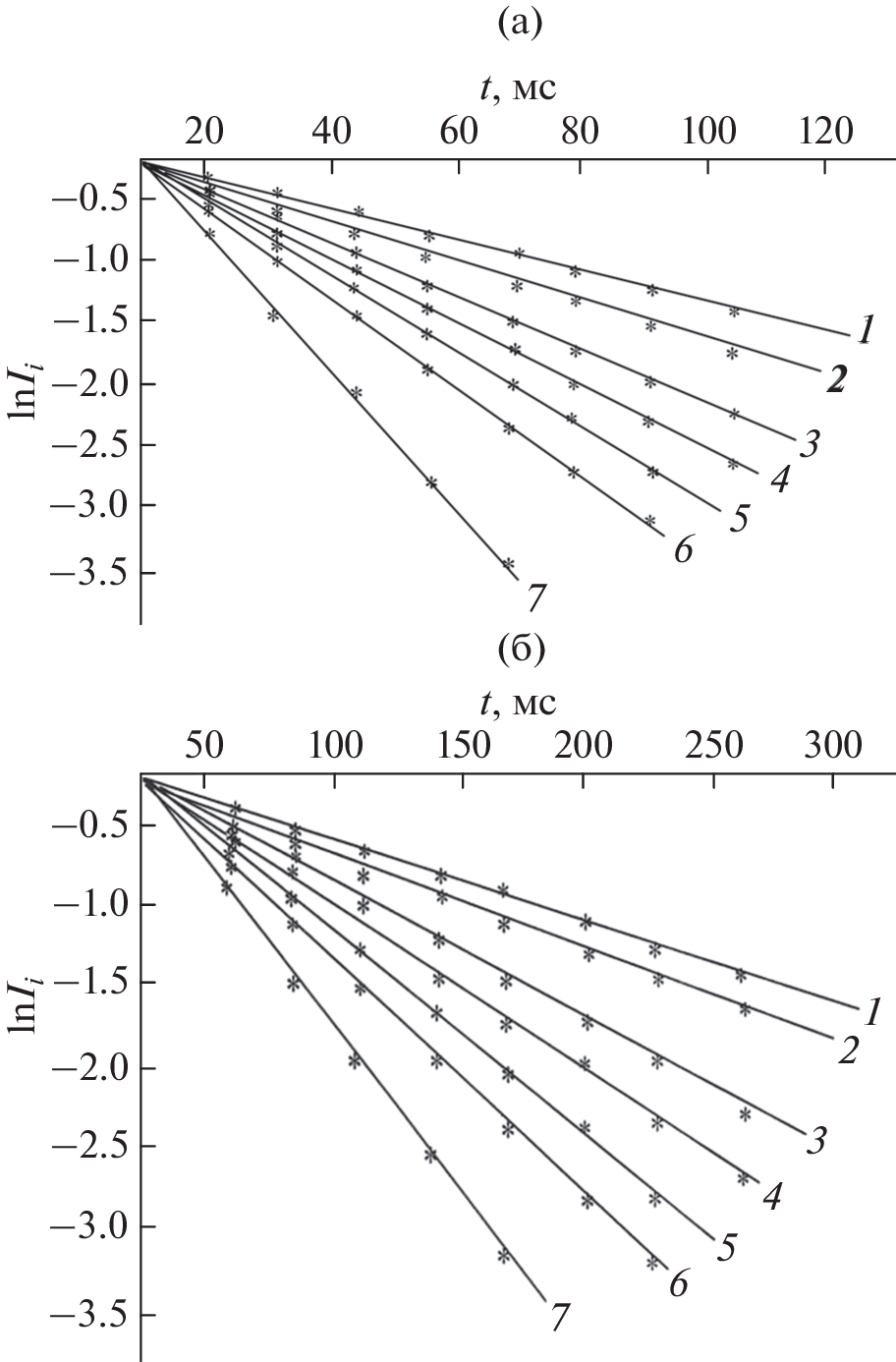 В одинаковых экспериментальных условиях нестационарными методами поверхностной ионизации – методом модуляции напряжения и методом модуляции потока – исследованы процессы адсорбции, гетерогенной реакции диссоциации на поверхности и термодесорбция молекул морфина С17Н19NО3 (с отношением массы к заряду m/z 285 а. е. м.) на поверхности окисленного вольфрама. Эксперименты были проведены на высоковакуумном масс-спектрометре с использованием “черной камеры”, все стенки которой охлаждаются жидким азотом. Определены кинетические характеристики процессов термодесорбции и гетерогенной реакции диссоциации молекул на поверхности: константа скорости термодесорбции в ионном и в нейтральном состояниях \({{K}^{ + }}\) и \({{K}^{0}},\) соответствующие энергии активации термодесорбции \({{E}^{ + }}~\) и \({{E}^{0}},\) предэкспоненциальные множители \(C~\) и \(D,\) а также константа скорости гетерогенной реакции диссоциации \({{K}^{d}}\) и энергия активации гетерогенной реакции диссоциации на поверхности, экспоненциальные множители в уравнении непрерывности поверхностной концентрации для радикалов C9H7N+CH3 (с отношением массы к заряду m/z 144 а. е. м.) при адсорбции молекул морфина на поверхности окисленного вольфрама.